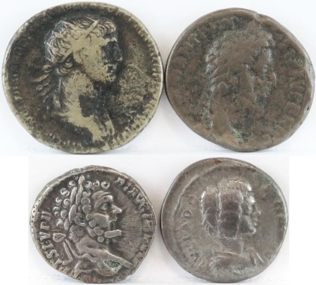 Lot of (4) Roman Empire Coins includes 98-117 Trajan, 180-192 Commodus, 193-211 Septimius Severus 193-211 Julia Domna.