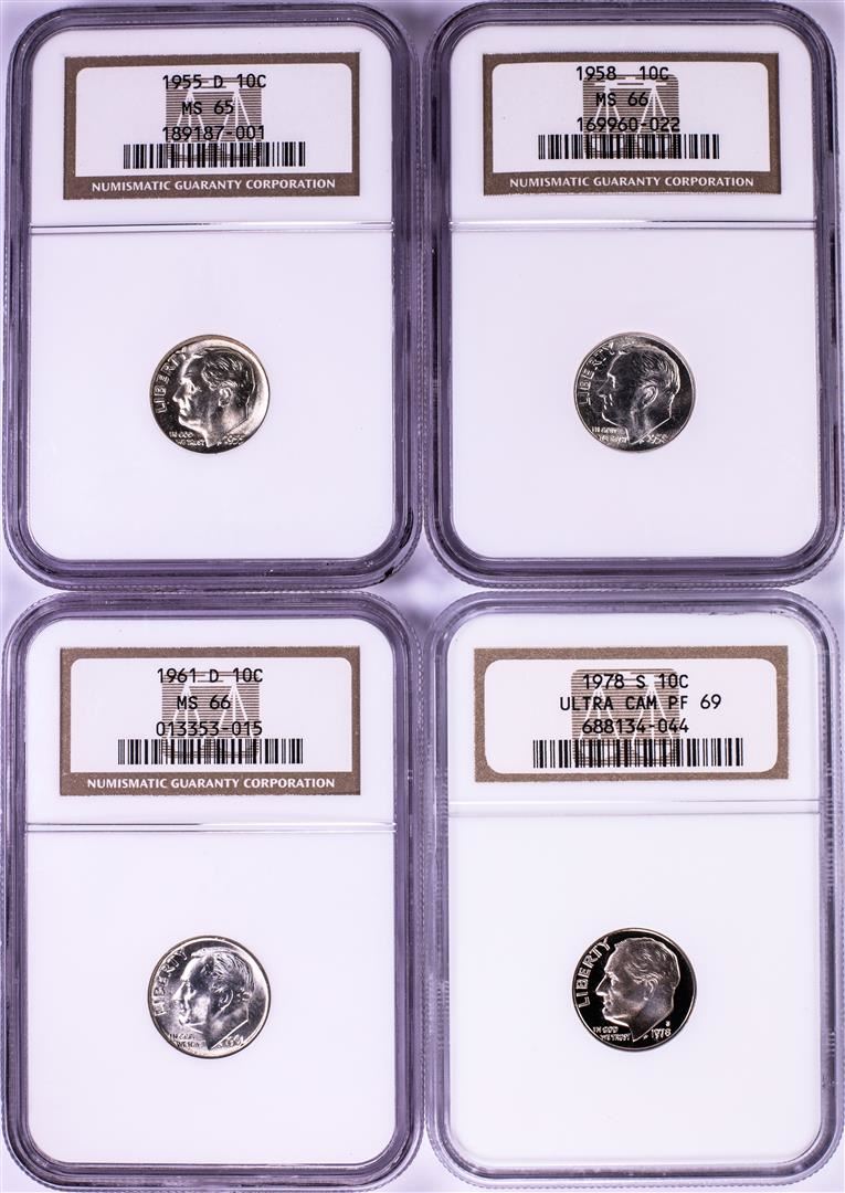 One Lot of (4) Roosevelt Dime Coins NGC Graded. NGC Certified.