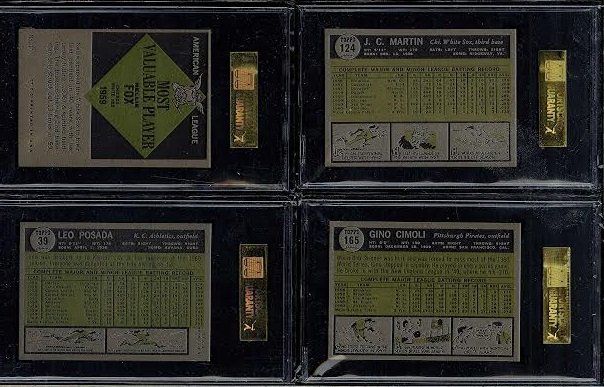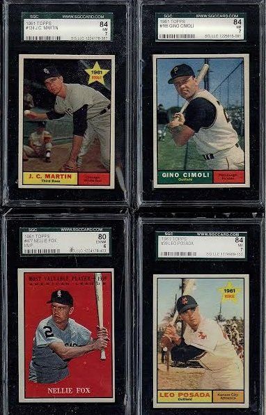 Lot of 4 SGC 1961 Topps Cards Fox, Posada, Martin, Cimoli. This lot includes #477 Nellie Fox MVP SGC 6, #39 Leo Posada SGC 7, #124 J.C. Martin SGC 7, #165 Gino Cimoli SGC 7