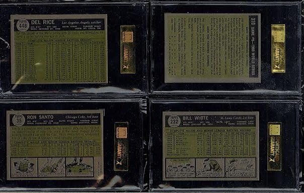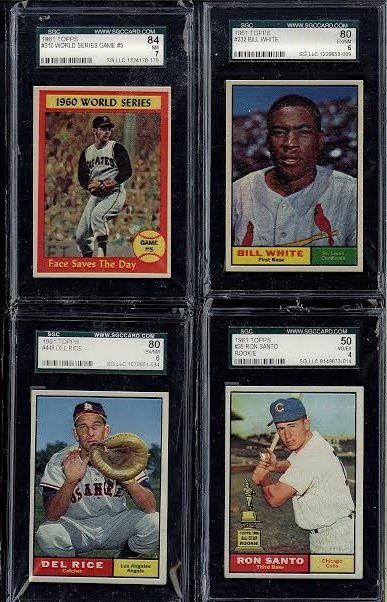 Lot of 4 SGC 1961 Topps Rice, Santo (Rookie), World Series Game 5, White. Lot includes #232 Bill White SGC 6, #310 World Series Game #5 SGC 7, #35 Ron Santo Rookie Card SGC 4, #448 Del Rice SGC 6.