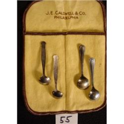 Lot of 4 salt spoons. Two marked MEKA-DENMARK. Two unmarked. 2-1/4" silver plate. Condition: Good