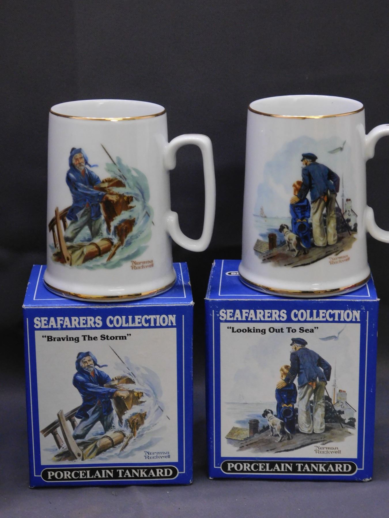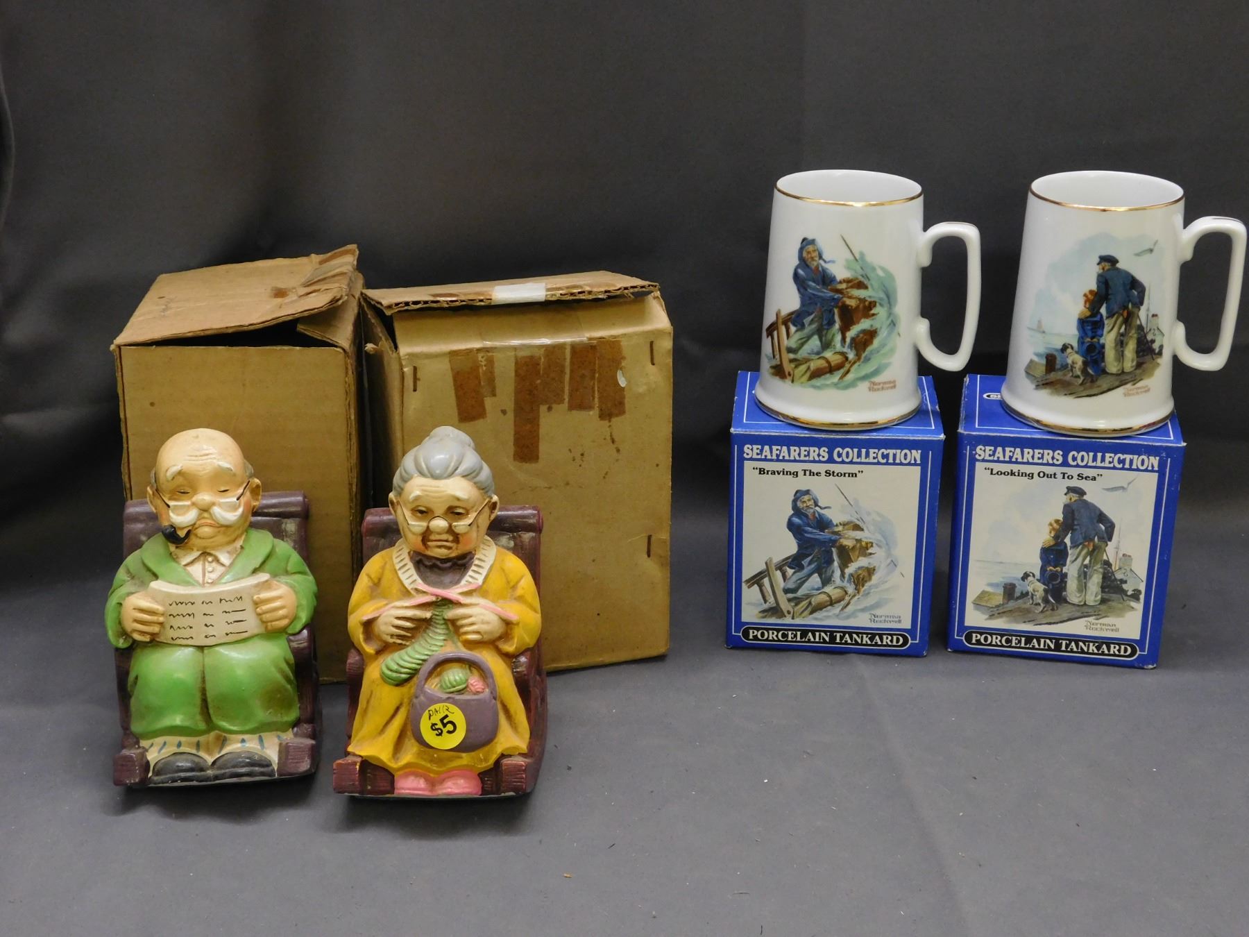 Lot of 4 Seafarers Mini-Tankard Collection Normal Rockwell & Grandma Grandpa Japan Figurines