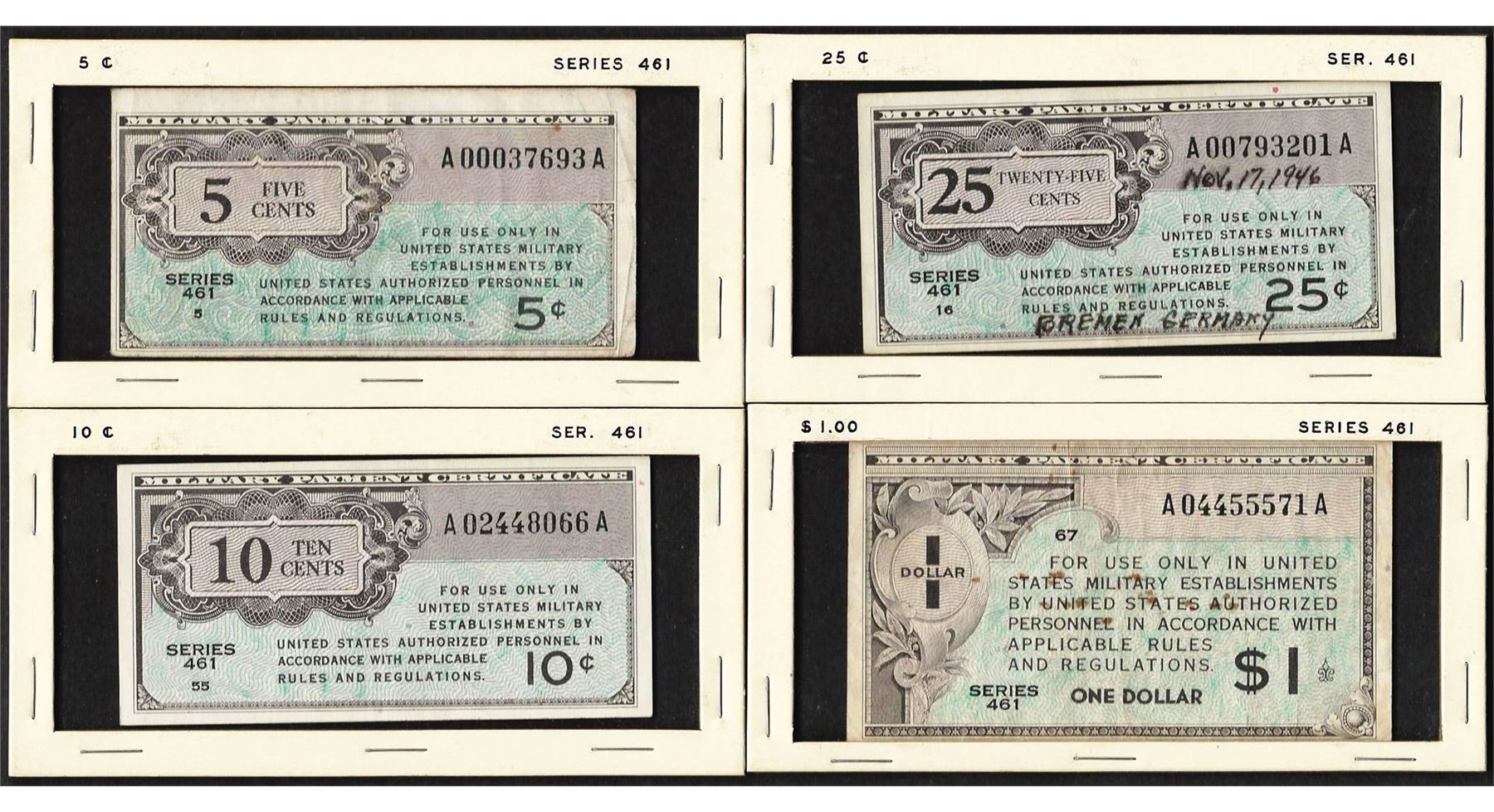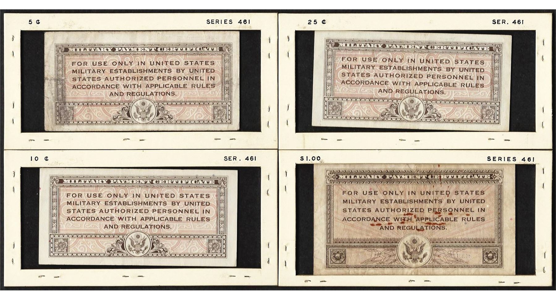 One Lot of (4) Series 461 Military Payment Certificate Notes.