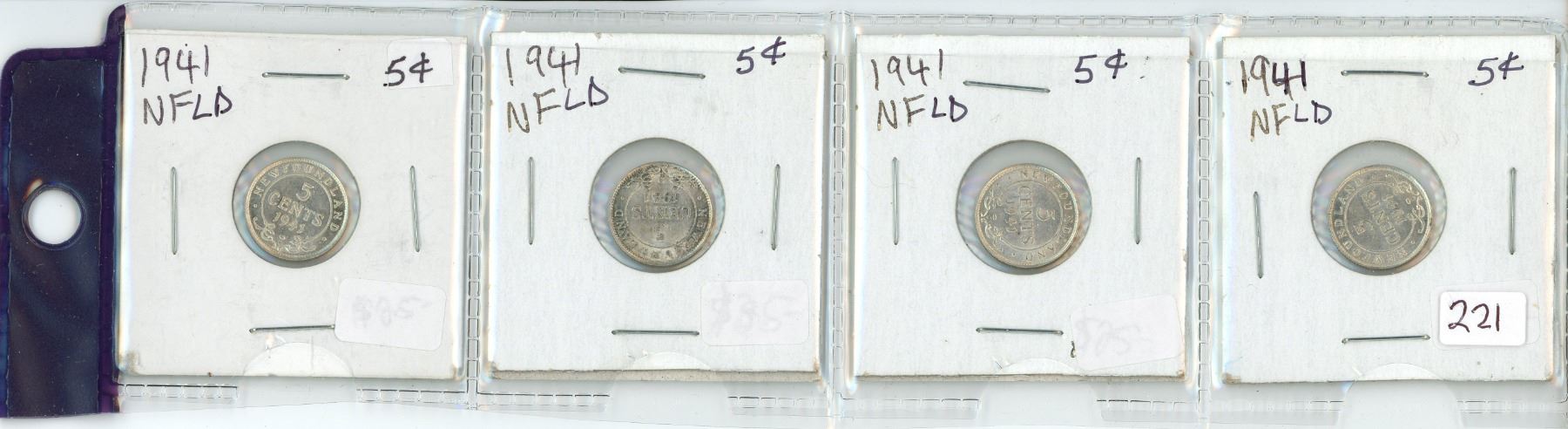 Lot of 4 Silver 1941 Newfoundland 5¢