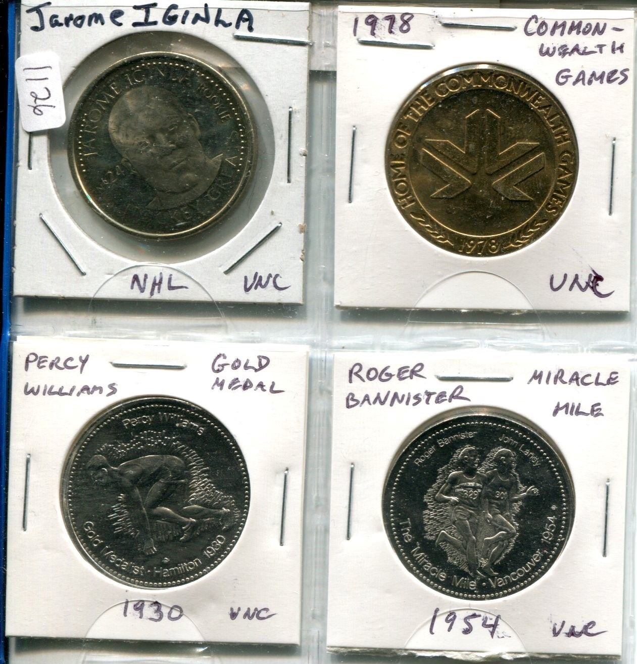 Lot of 4 Sporting Medals & Trade Dollars. Includes Jarome Iginla (NHL) & Track & Field. Uncirculated.