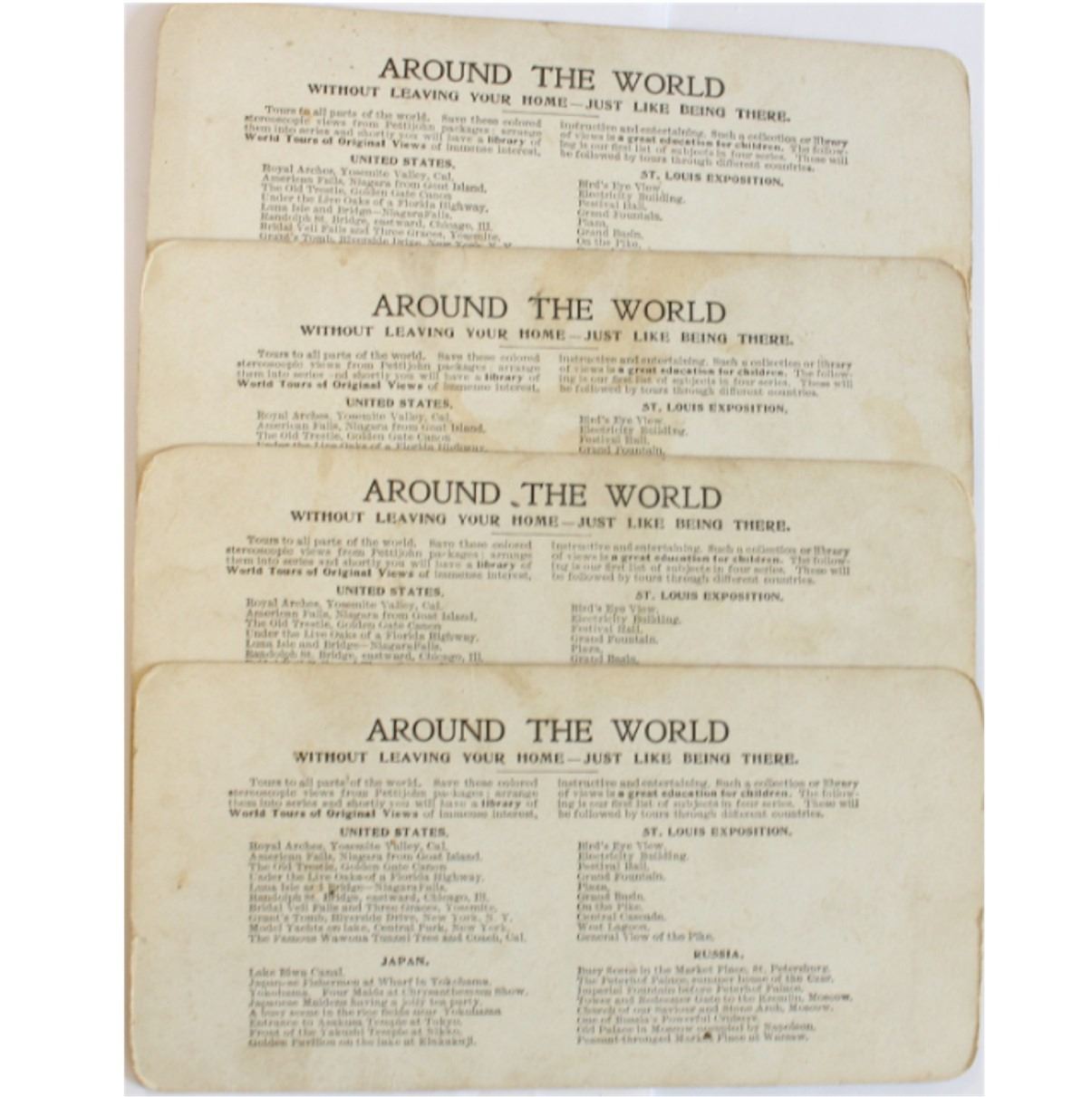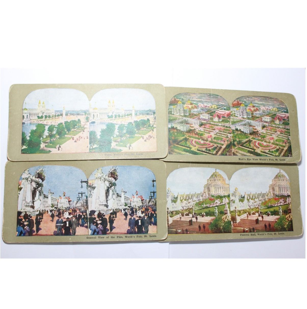 Lot of 4 St. Louis World's Fair Stereoscope Cards. You will receive 4 Different Cards in this lot depicting scenes from the St Lous Exposition. 4pcs.