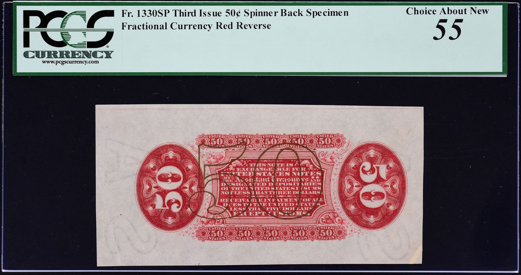 Lovely lot of four wide margin Justice autographed and printed faces and red & green backs. Fr. 1343sp Justice face in Choice About New 58 PPQ; Fr. 1355sp Justice Face in About New 53 PPQ; Fr. 1330sp back in Choice About New 55 with the comments "Repair in LR Corner."; Fr. 1331sp back in Choice About New 58 PPQ.
