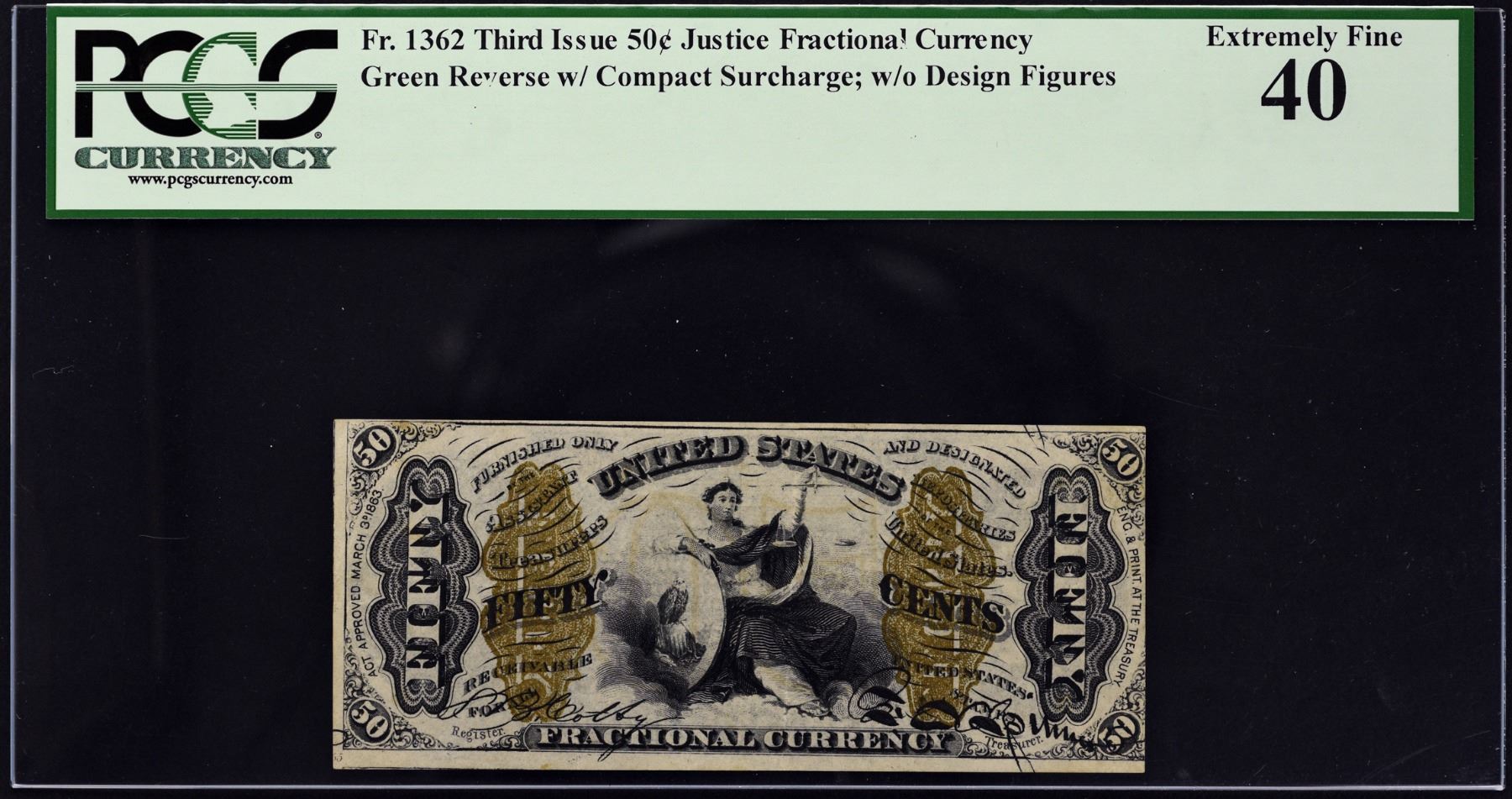 This group shows the entire type set for the compactly spaced "A-2-6-5" surcharges. Includes the following; Fr. 1362 in Extremely Fine 40; Fr. 1363 in About New 53 with rare "1""a" design figures; Fr. 1364 in About New 53; Fr. 1365 in Extremely Fine 40 with the comments "Pinholes."