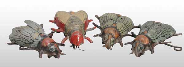 Description German. Working. Includes one hand-painted and three lithographed toys. Moderate overall paint loss and wear. Condition (Very Good). Size All: 4 - 1/2" L.