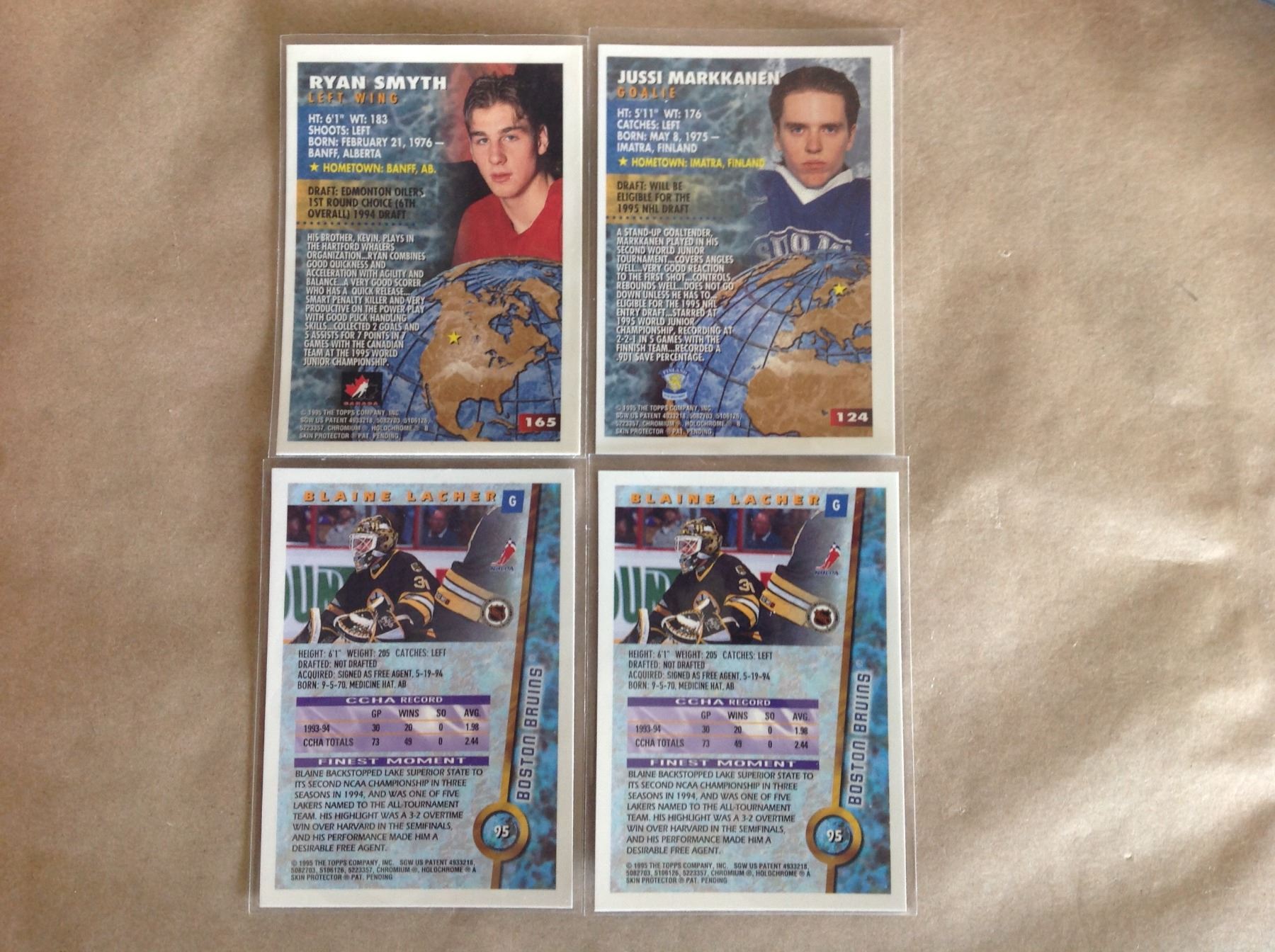 1994/95 (2) - Lacher Finest & (2) World Junior Championship Hockey Cards * Ryan Smith * Jussi Markkanen * Blaire Lacher