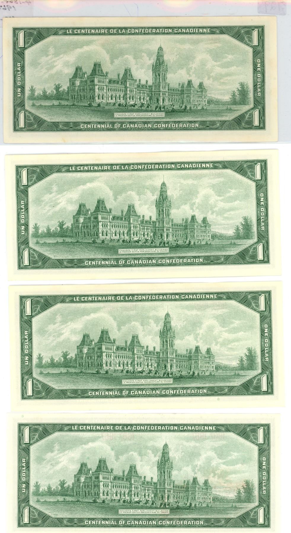 Lot of 4 UNC: 1967-1967 canada $1 bills, all Beattie/Rasminsky