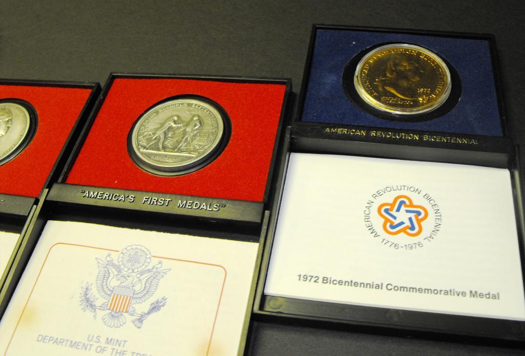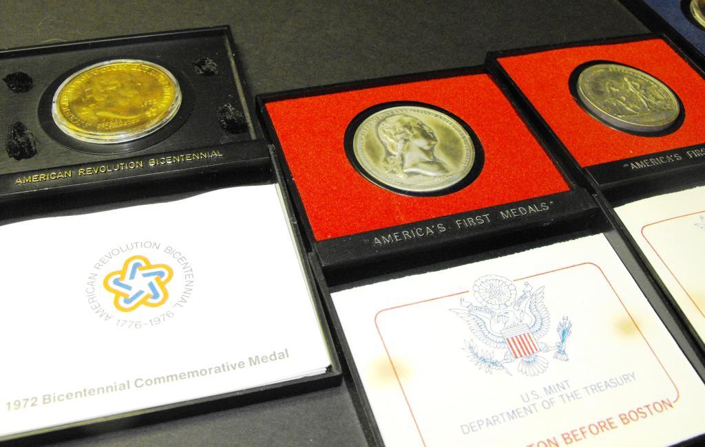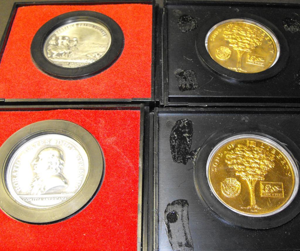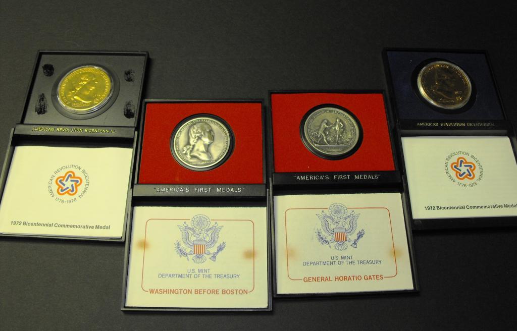 Two Geo. Washington gold colored, one Horacio Gates, One Washington before Boston