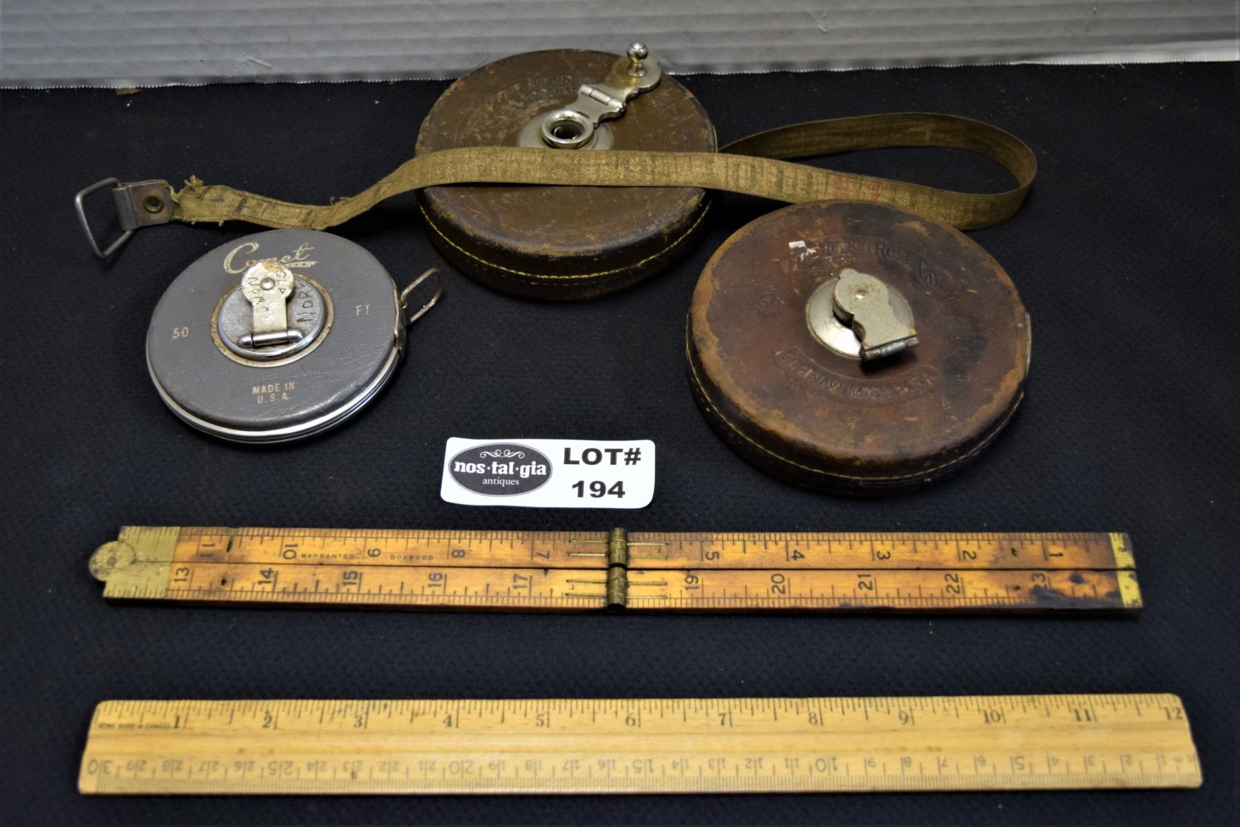 Lot of 4 Various Retractable Tape Measures and 1 Blindman Ruler