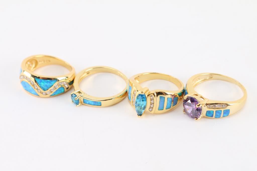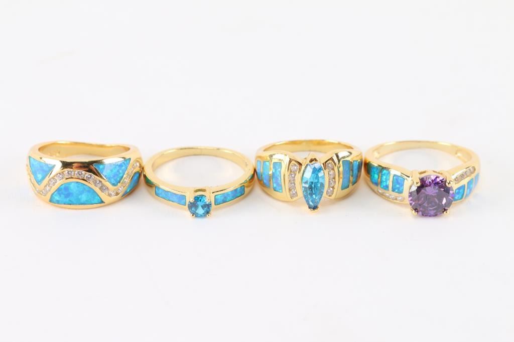 22K gold over sterling silver, with semi-precious stones. Two are size 6, one at size 7, and 8.