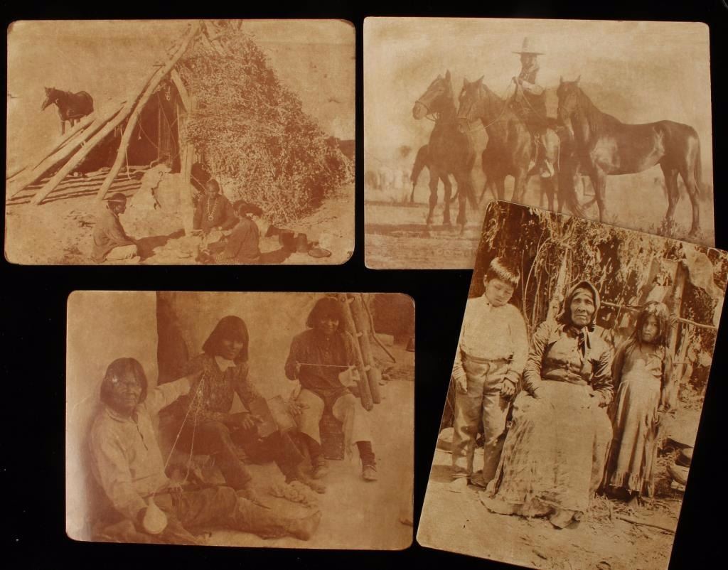 From 'J.P. Standiford U.S. Licensed Photographer in the Indian Territory' headquarters in Muskogee, Creek Nation. Depicting Native American daily life scenes.