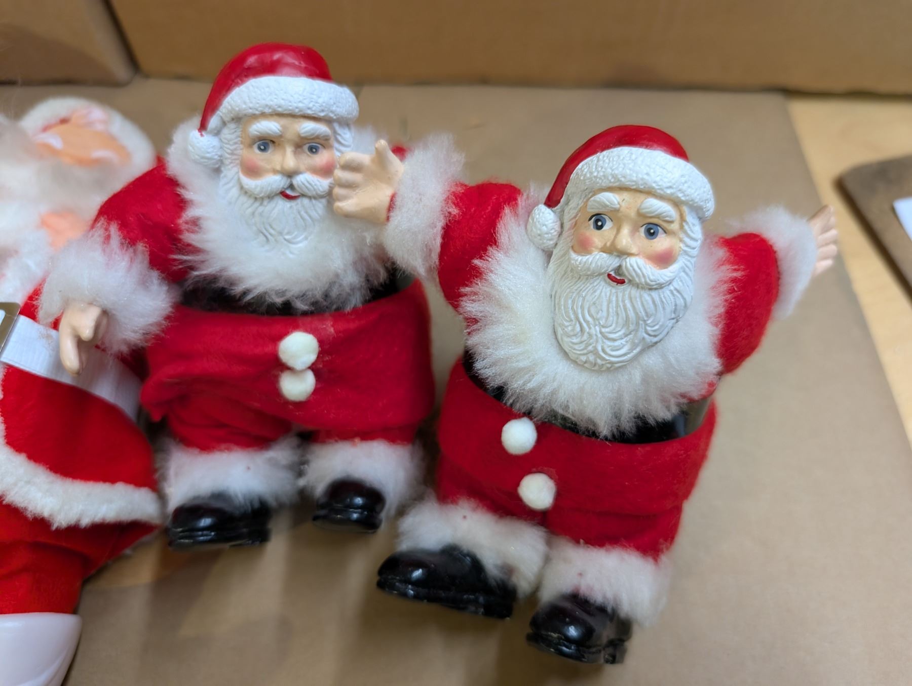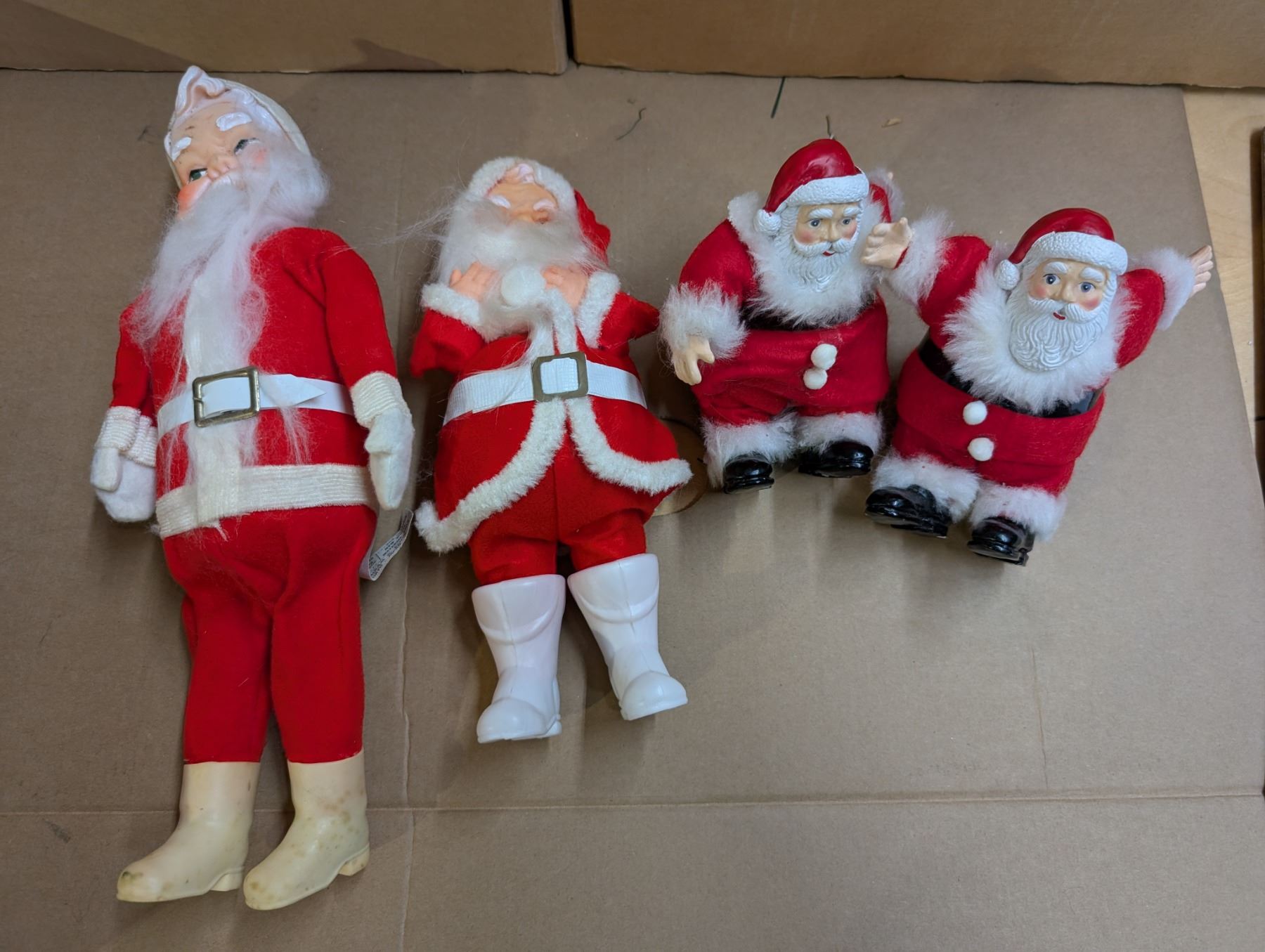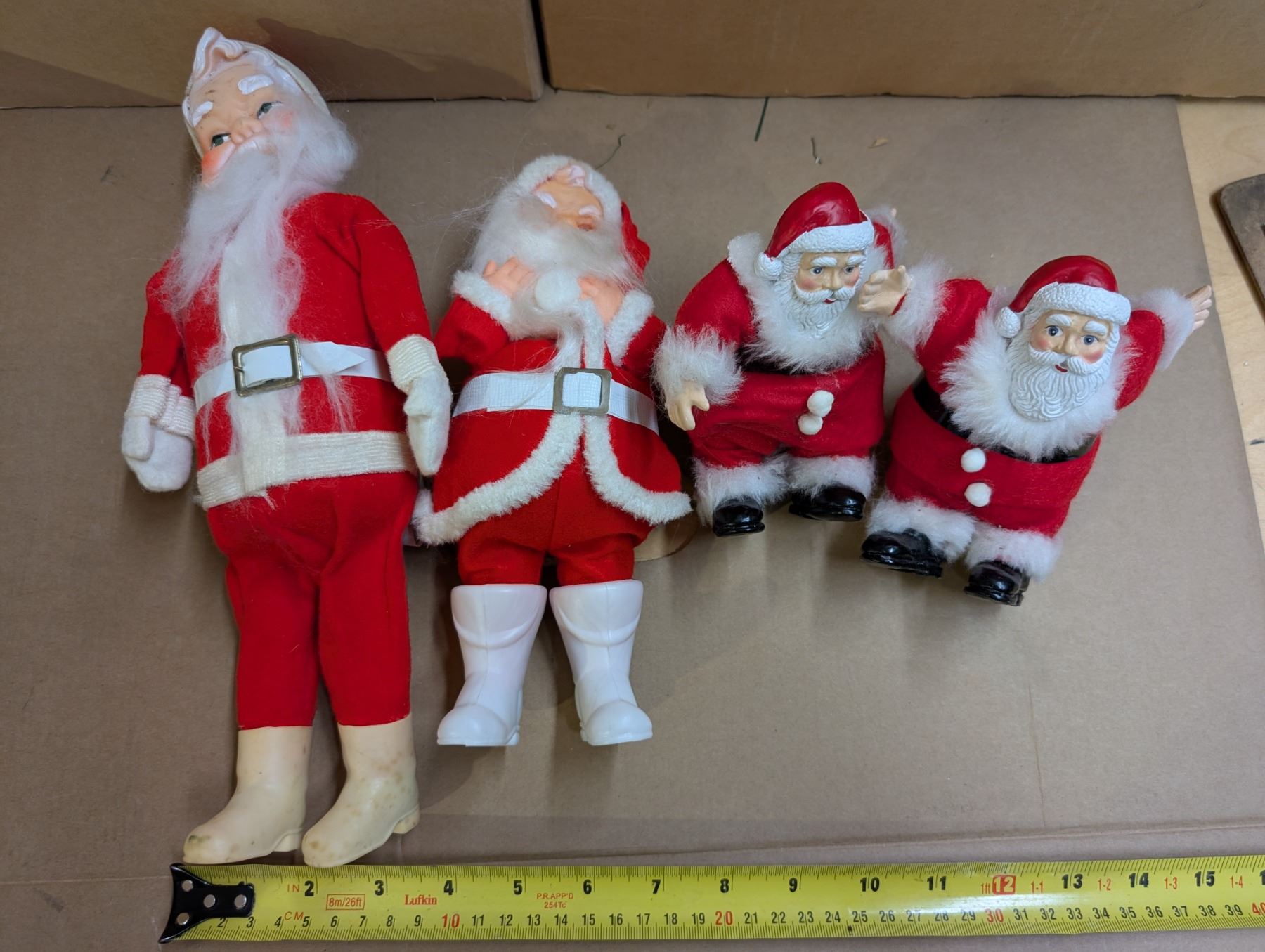 Lot of (4) Vintage Santa Decor Figures (2) Sitting Shelf Santa's