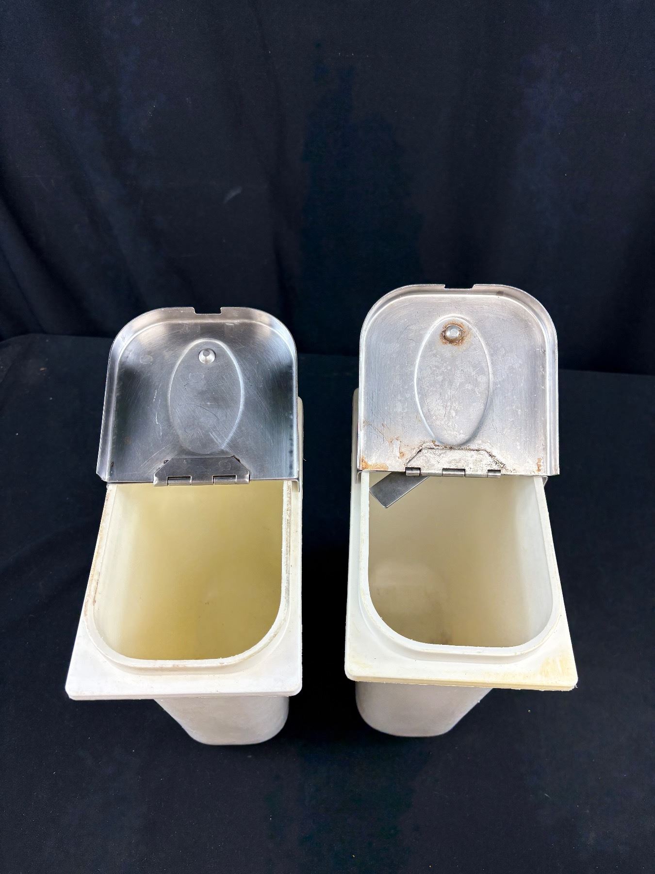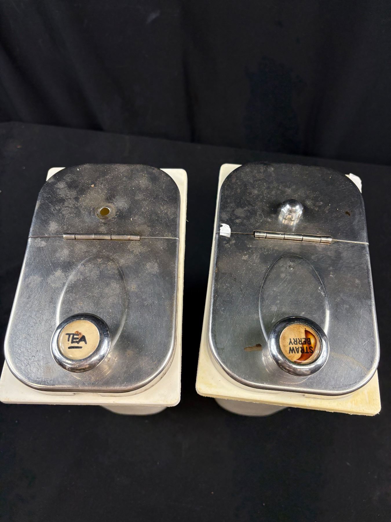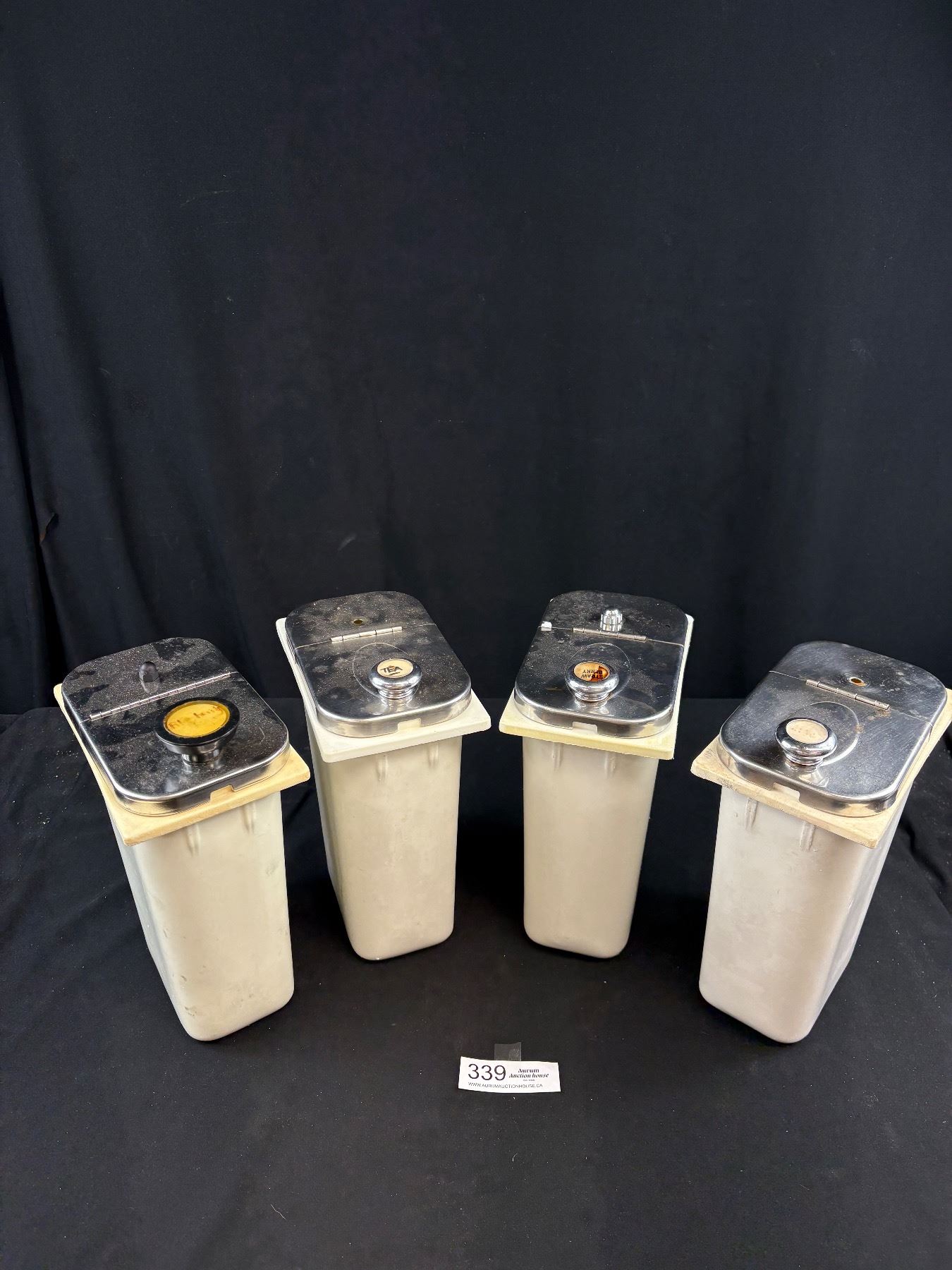 Lot of 4 Vintage Soda Fountain Shop Containers with Metal Description Caps