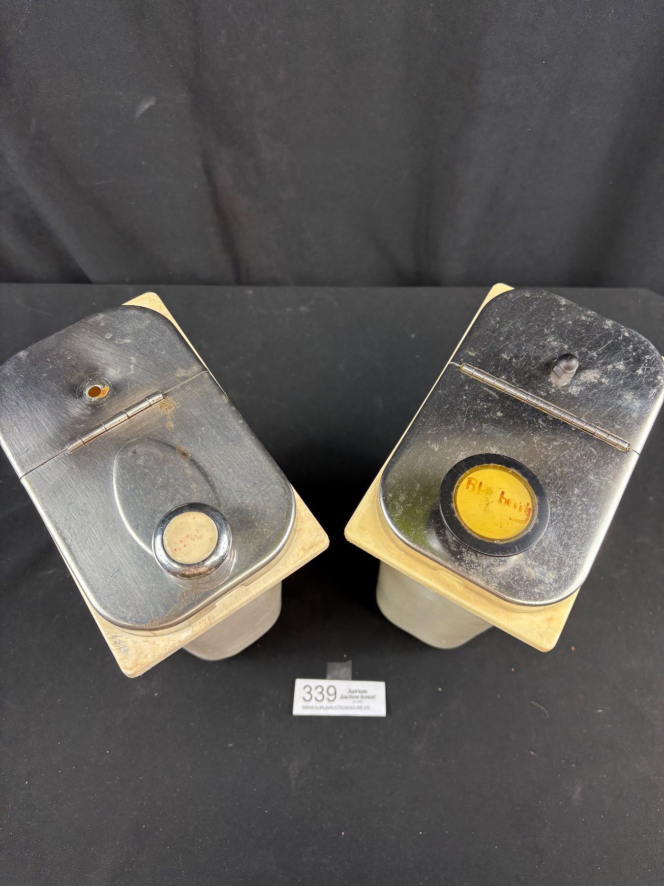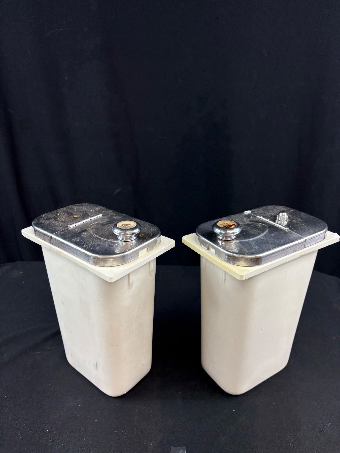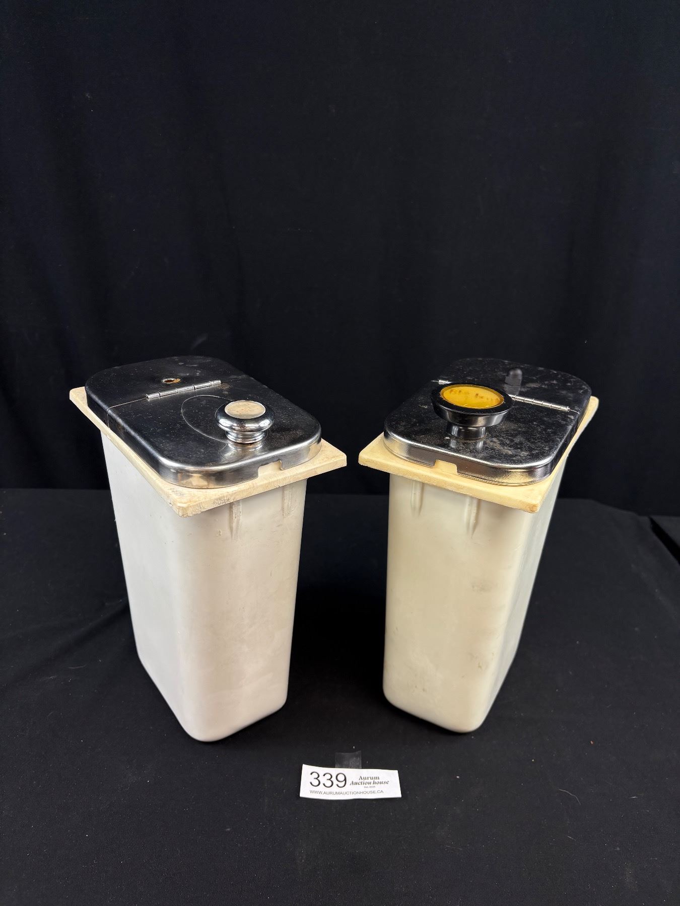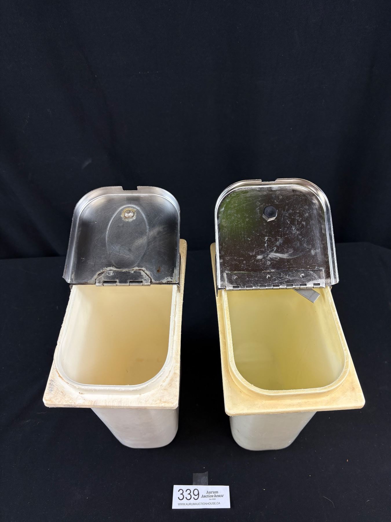 Lot of 4 Vintage Soda Fountain Shop Containers with Metal Description Caps