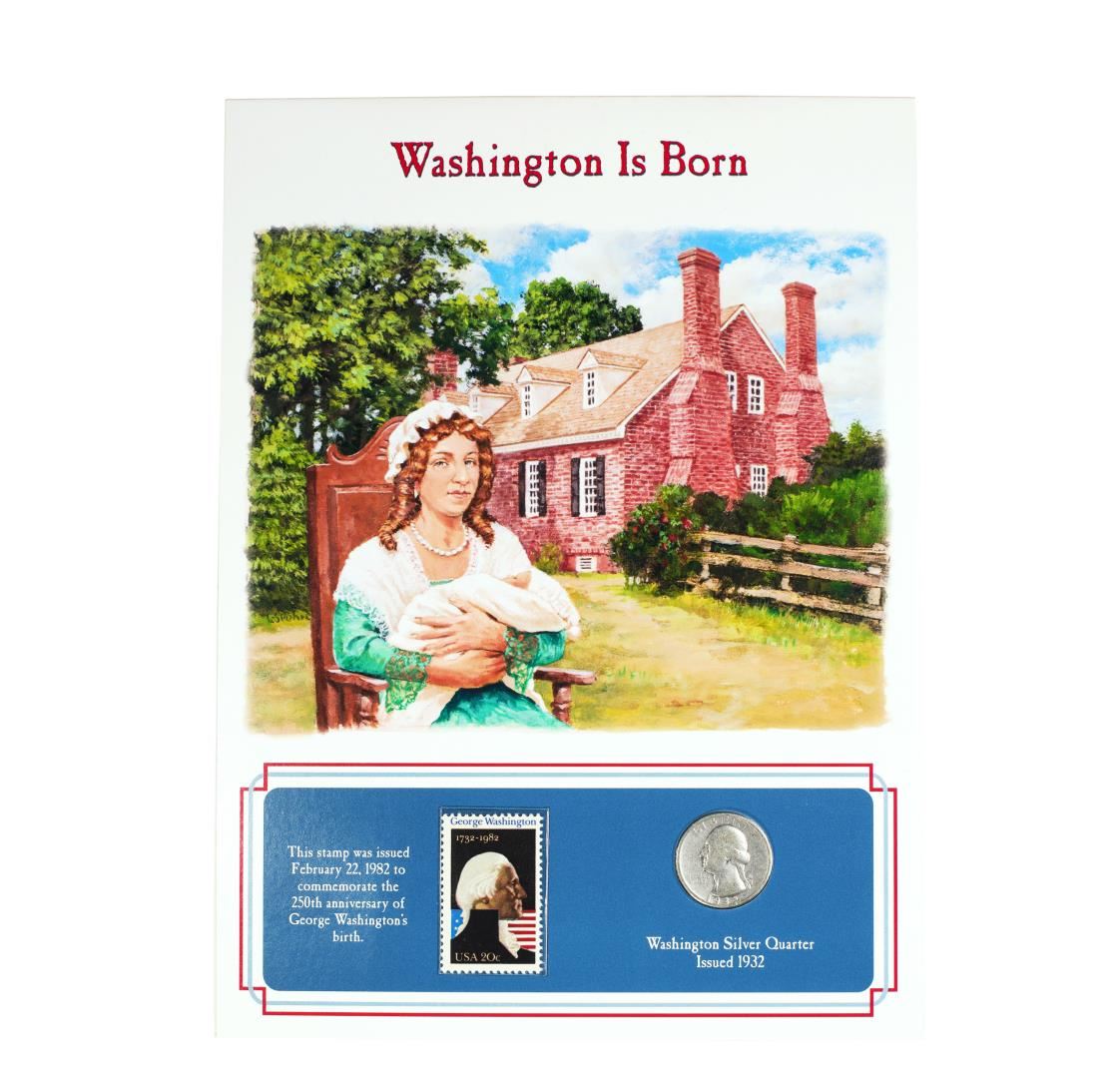One Lot of (4) Washington Quarter & Stamp Sets.