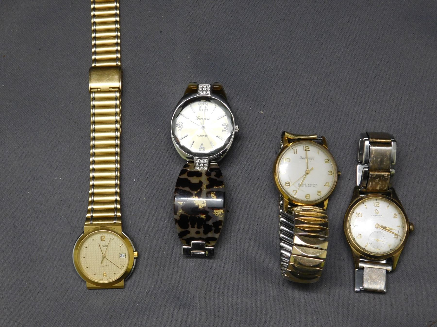 Lot of 4 Watches Certina Mechanical, Renown 25 Jewel Automatic, Genexa, Birks, untested parts repair