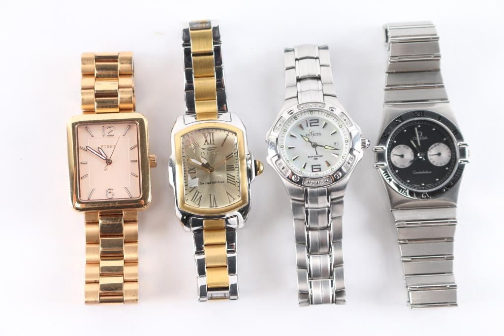 Includes: Invicta (womens), Invicta Lupah Model 15156. Fossil Atwater ES4156, and Omega Constellation.