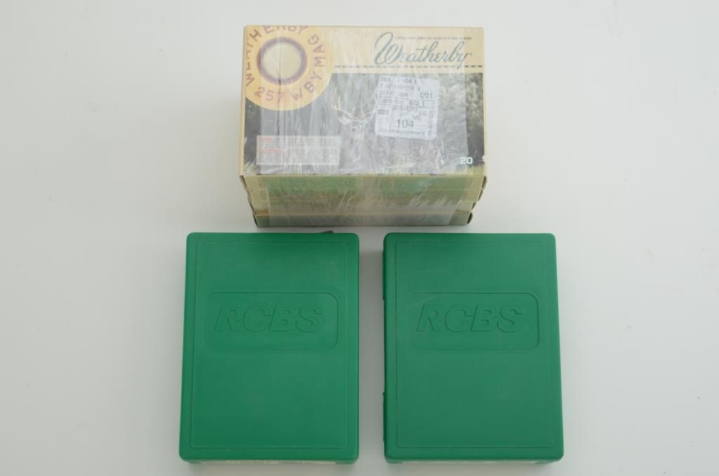 Lot of 4 boxes of .257 WBY Magnum ammo and an RCBS die set for that caliber; also a set of RCBS dies for .204 Ruger caliber. Est.: $75-$150.