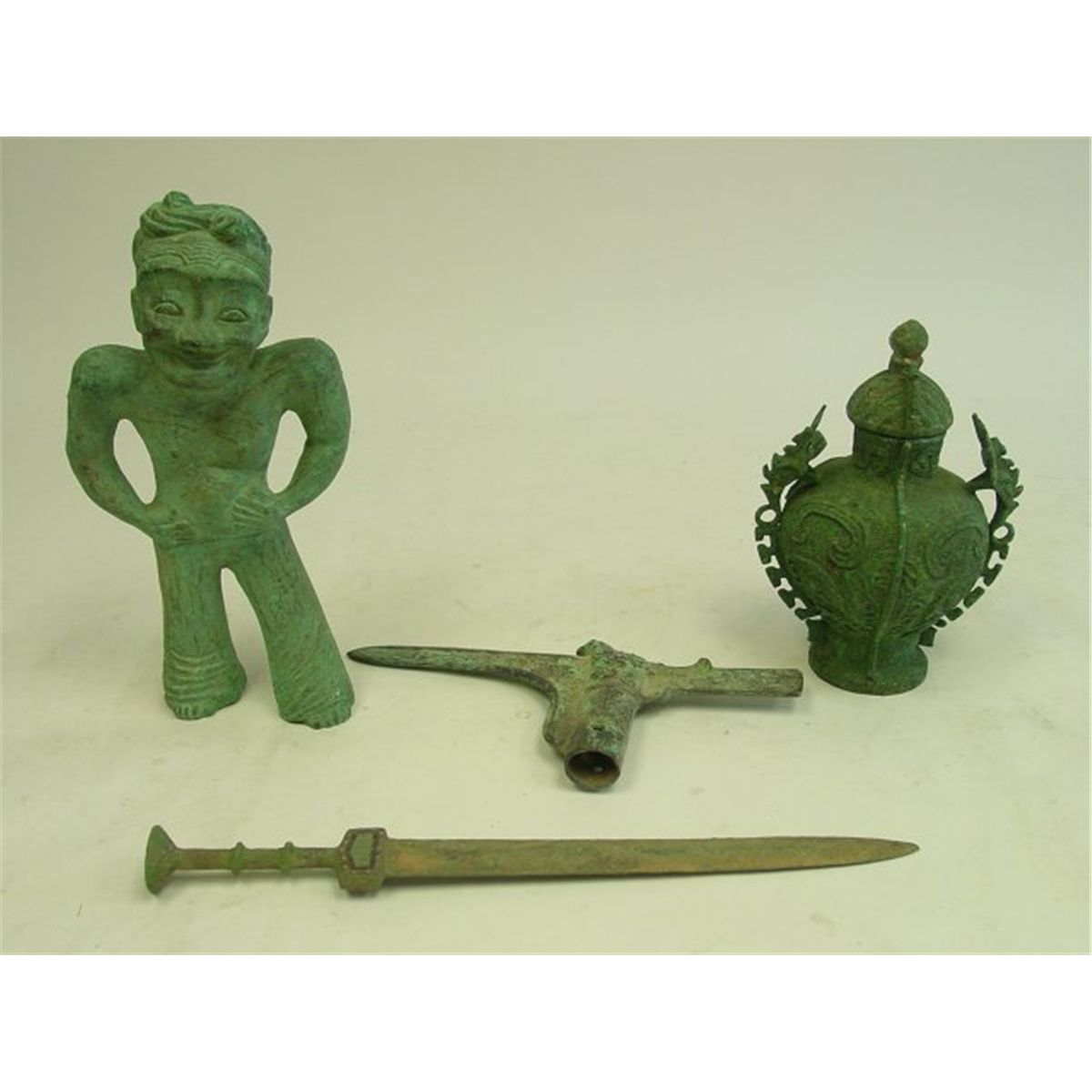 Including: "Farmer", 2 knives & covered vessel. Largest approx. 13.75" H, smallest 12.75" L. Please read our terms of sale.