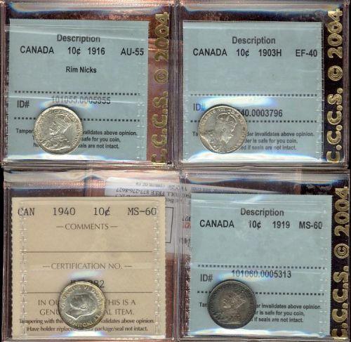 Lot of 4 coins, includes CCCS 1903H EF40, 1916 AU55, 1919 MS60 and ICCS 1940 MS60.