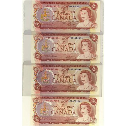 Lot of 4 different 1974 $2 "replacement" NOTES, *B/A, B/X,*R/E, *R/W. Grades vary from Choice Unc to Gem Unc.