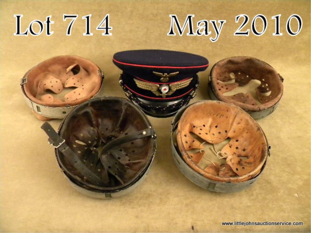 Lot of 4 helmet liners, railway conductor’s cap, 8 sword knots, and cap visor for restoration. An excellent “dealer’s lot”. Est: $300 - $600