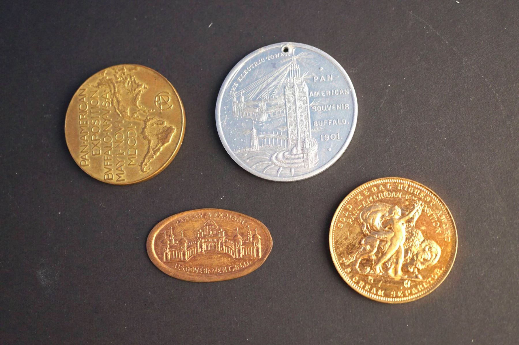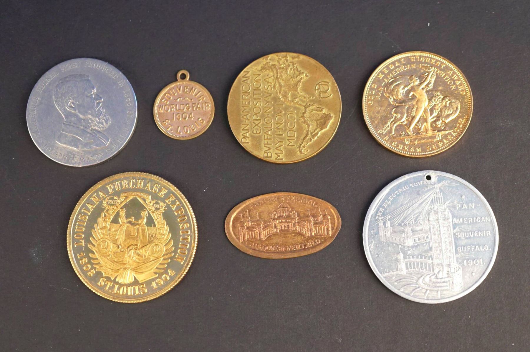 Lot of 4 medals relating to the Pan American Exposition of 1901 + Three of the St-Louis World's Fair of 1904. Total 7 pieces.