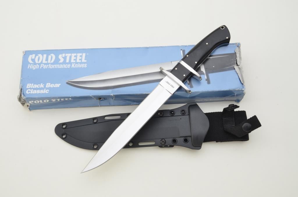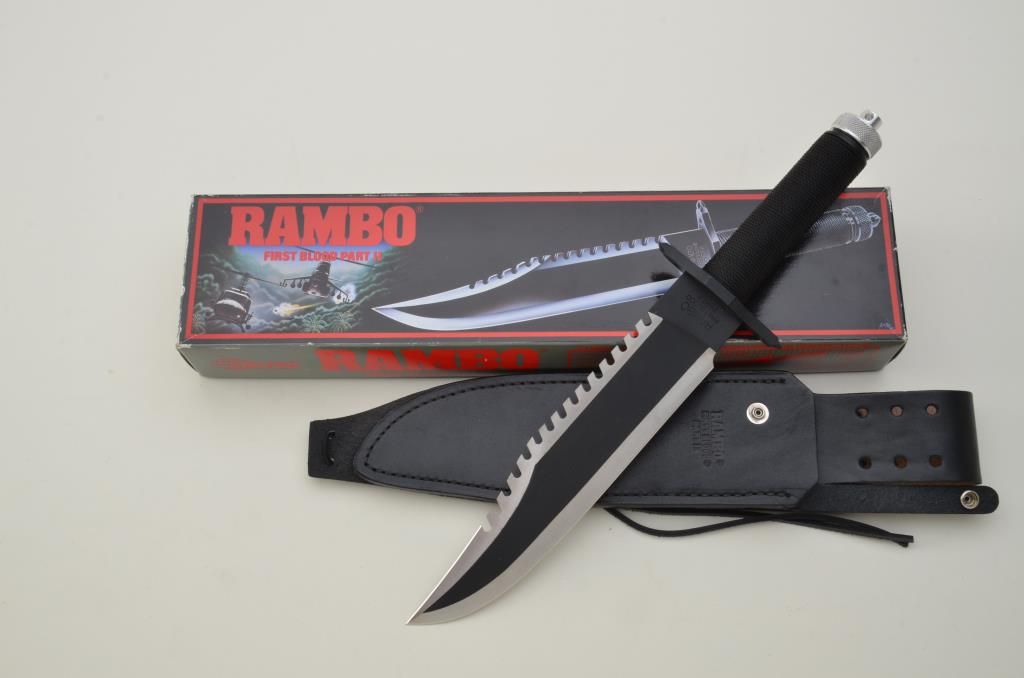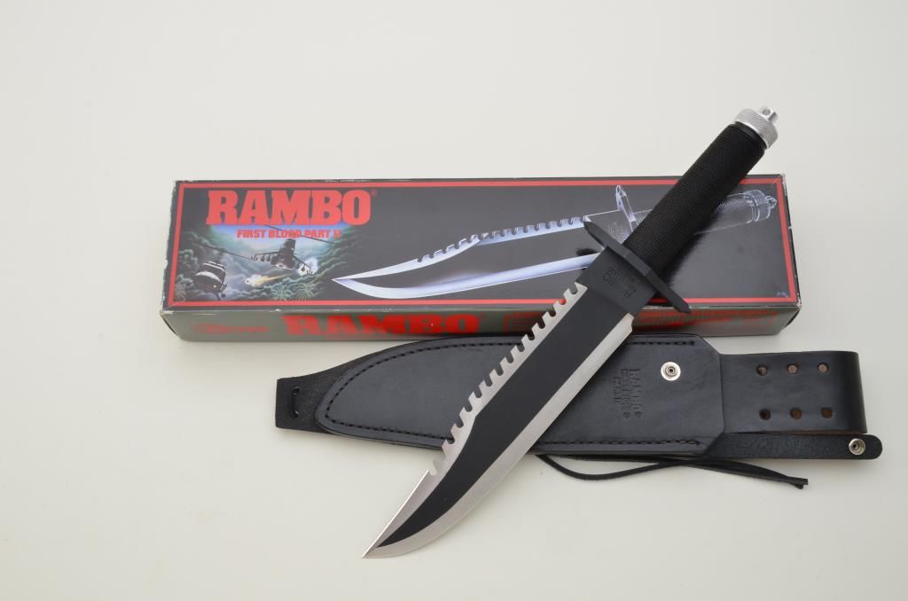 Lot of 4 modern knives; 1 large black bear classic cold steel inbox, 1 Rambo 1st blood part 2 inbox, Rambo 1st blood part 1 inbox and one unidentified. Est.: $100-$300.