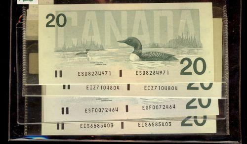 Lot of 4 notes, 1991 $20 BC-58a and 58 ai. Includes the following prefix notes: EIS, ESF,ESD,EIZ.Al