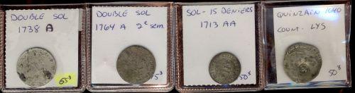 Lot of 4 pieces; Includes Sol, Double sol and Quinzain (1640-1764) Grades vary from Good to VG+. Should be viewed!