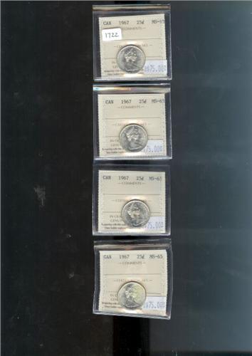 Lot of 4 pieces; all 1967 ICCS MS-65PQ , fully struck with strong lustre.