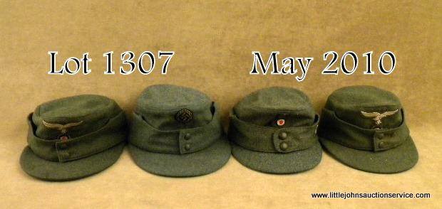 Lot of 4 various German armed forces M43 field caps. All caps retain their original insignia and are fully lined. In good to very good condition. Est: $750 - $1,500