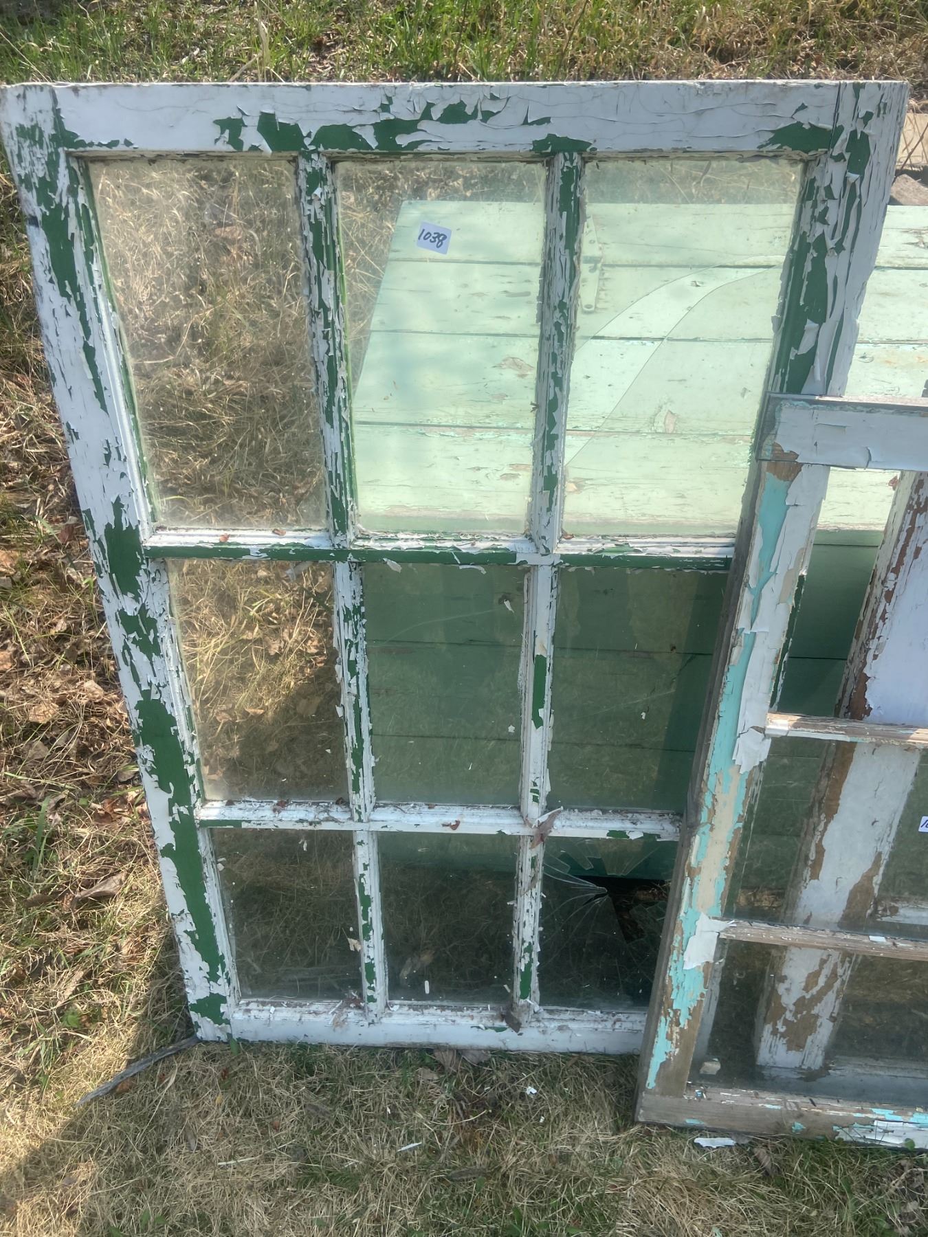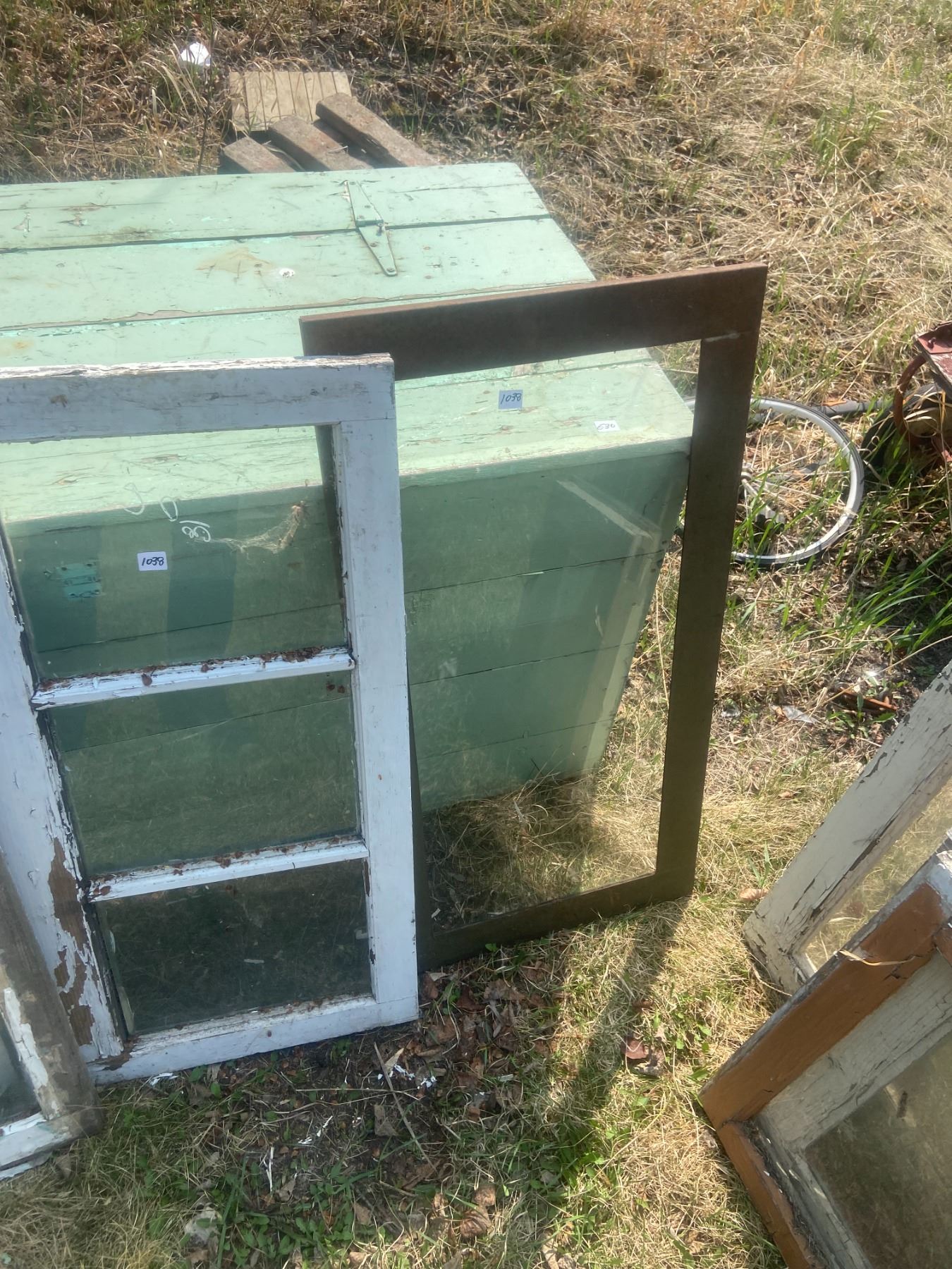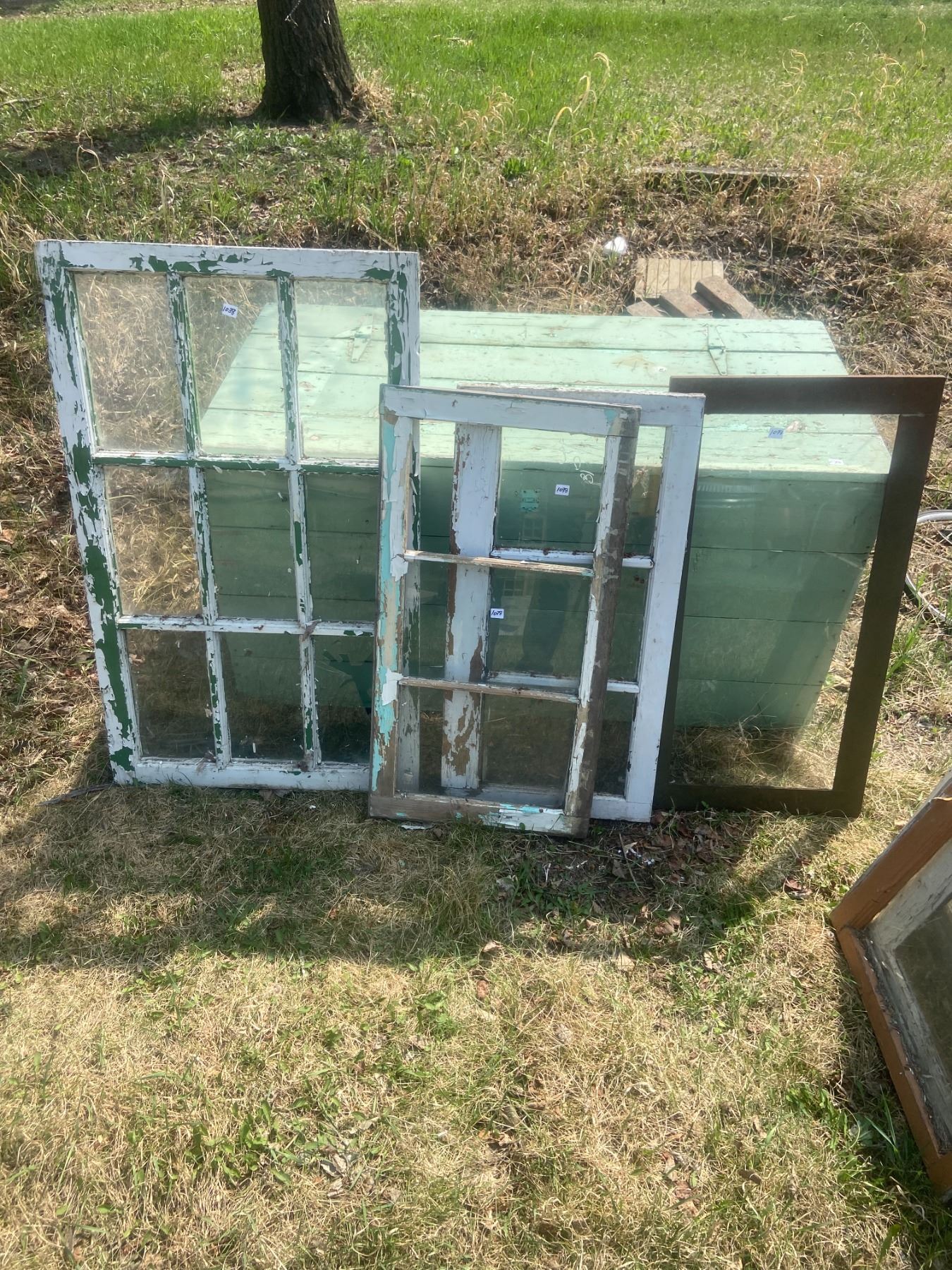 Lot of 4 various size windows, 1 is a metal frame - as is condition