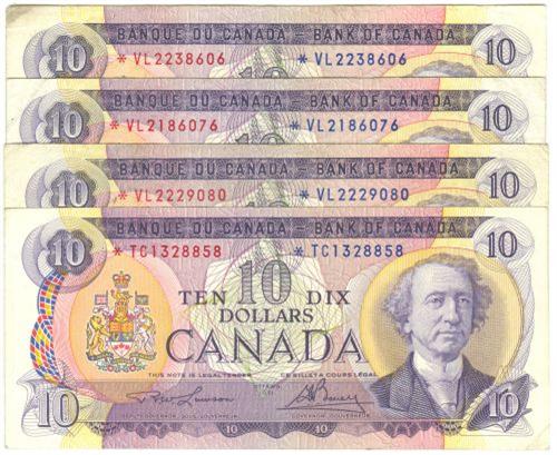 Bank of Canada Lot of 4 x $10.00 replacement note 1971 in Fine + to Very-Fine +, BC-49cA, Lawson Bouey, *VL (3) & *TL.