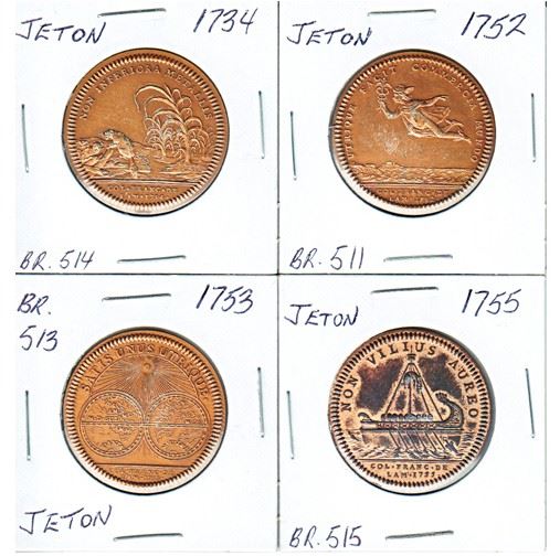 Lot of 4 x France Jetons from the years 1734, 1752, 1753 and 1755