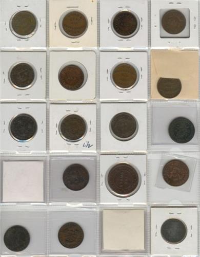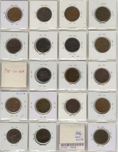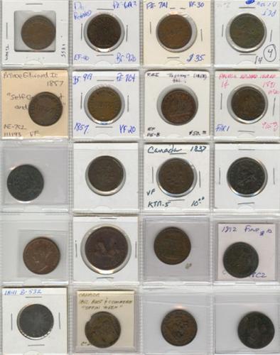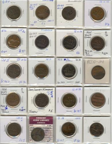 Breton Pre-confederation Tokens. Nice assortment of mainly PEI tokens + others, ideal lot for research, unpicked and as received from our consigner. VG to EF average VF. Lot of 40 tokens.