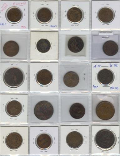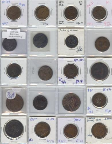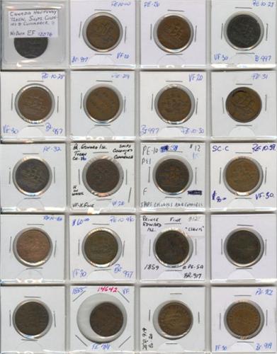 Breton Pre-confederation Tokens. Nice assortment of mainly PEI tokens + others, ideal lot for research, unpicked and as received from our consigner. VG to EF average VF. Lot of 40 tokens.