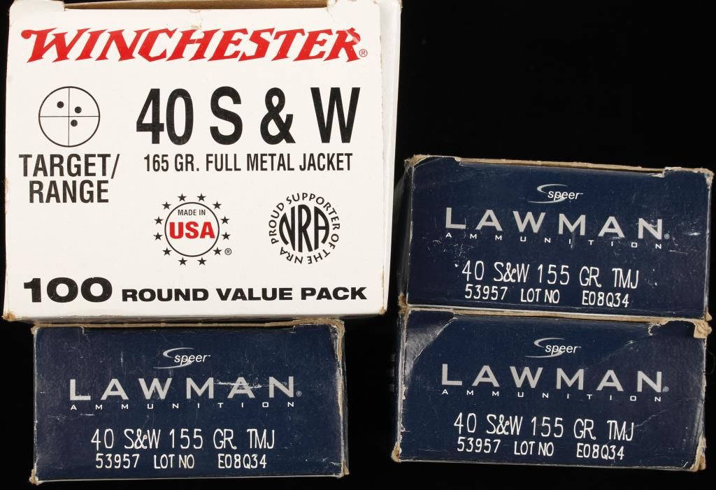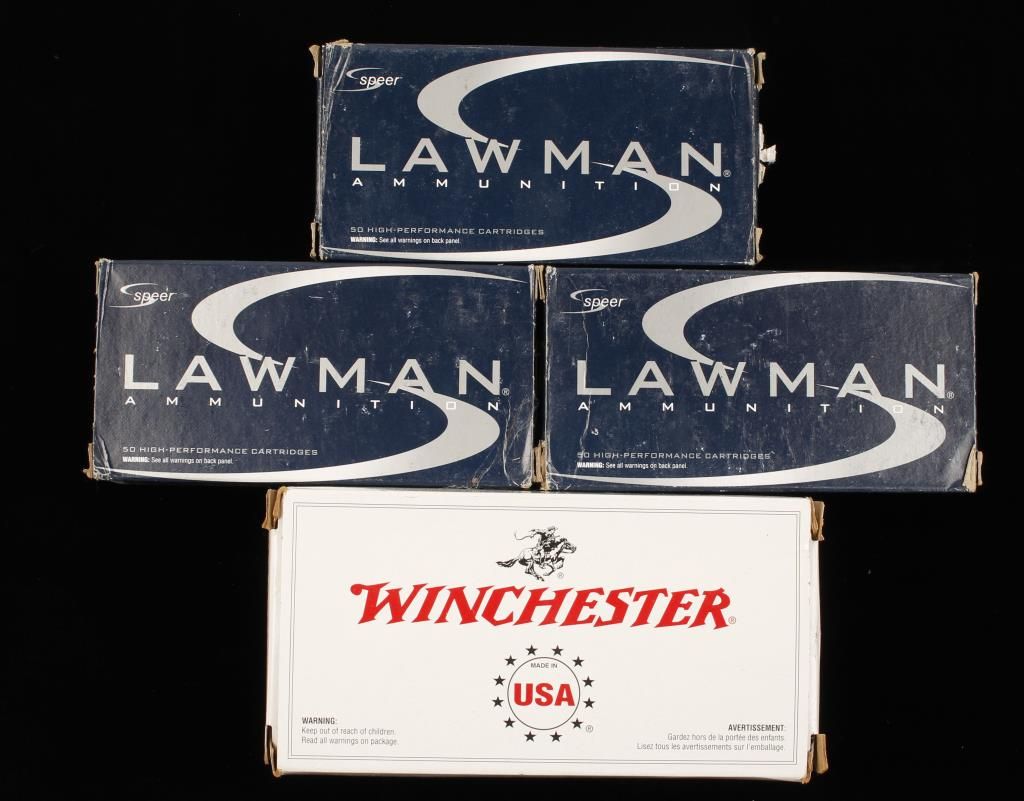 250 rounds. From Winchester (100 rounds at 165 gr.) and Speer Lawman (150 rounds at 155 gr.)