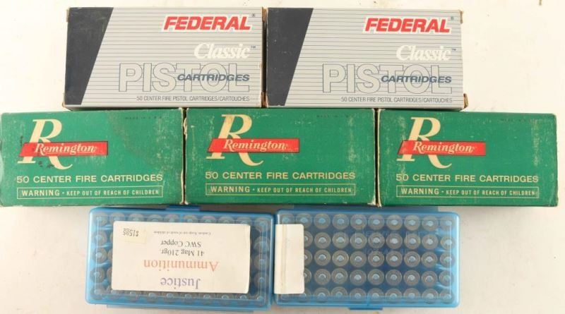 Including 3 boxes of Remington 210 Gr SP, 2 boxes Federal Classic 210 Gr High Shock JHP, 2 boxes Justice SWC Copper 210 Gr. 300+ Rds total.