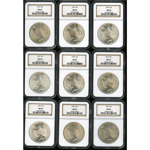 Includes: Five 1922 NGC MS64, Thirty-Two 1923 NGC MS64, Two 1924 NGC MS64, Two 1925 NGC MS64. Lot of 41 coins.