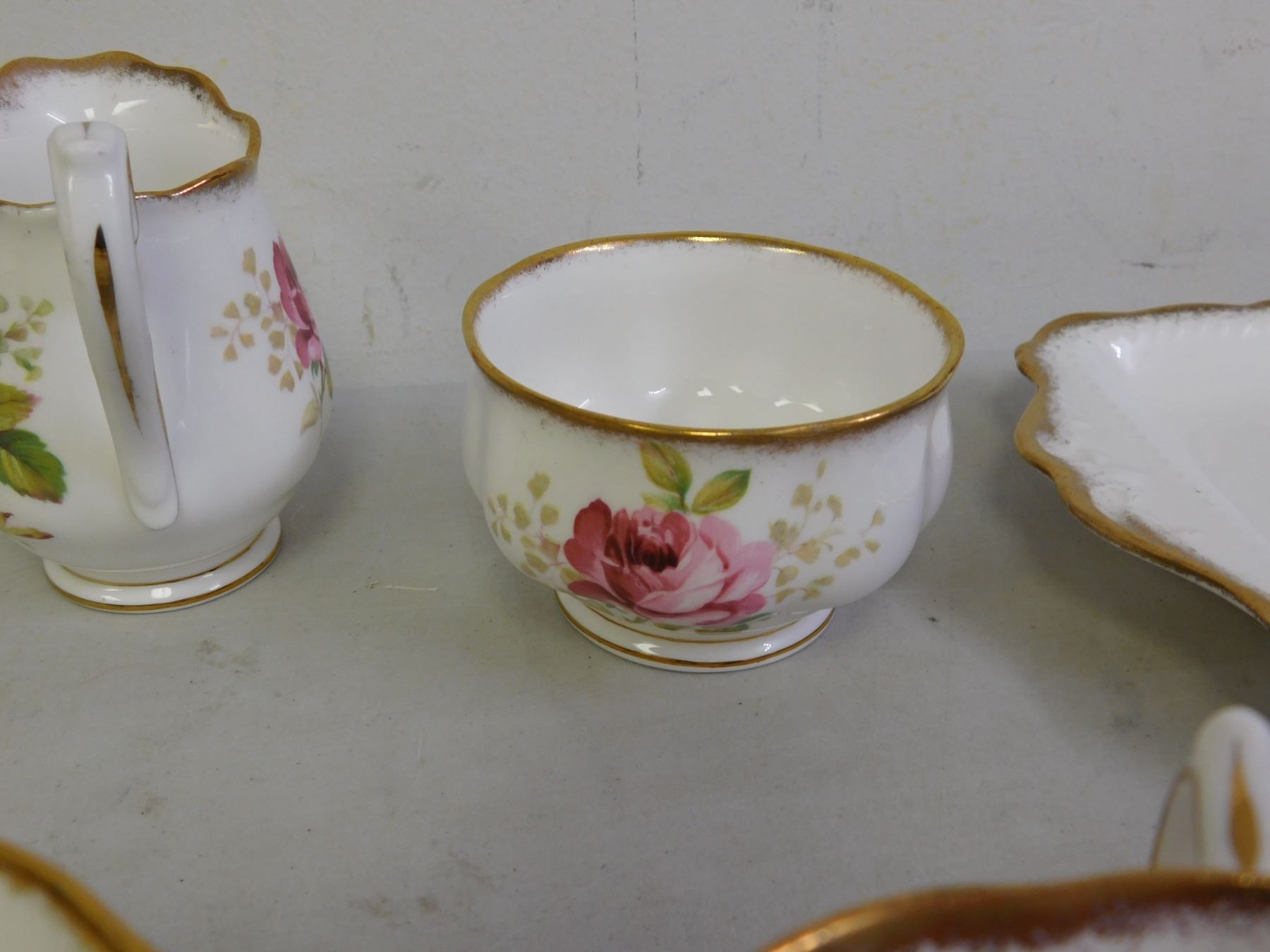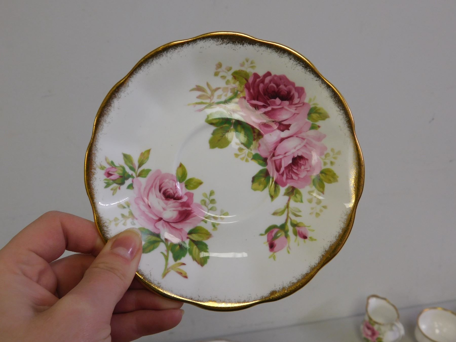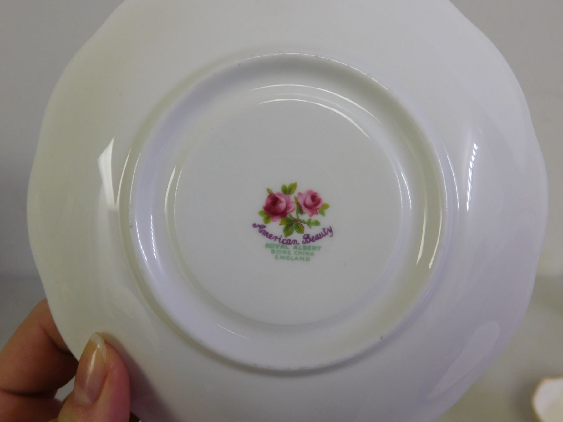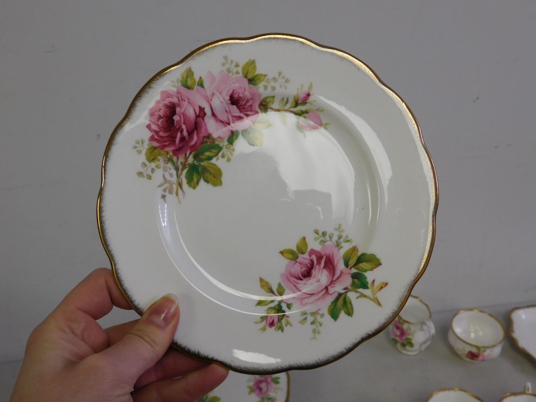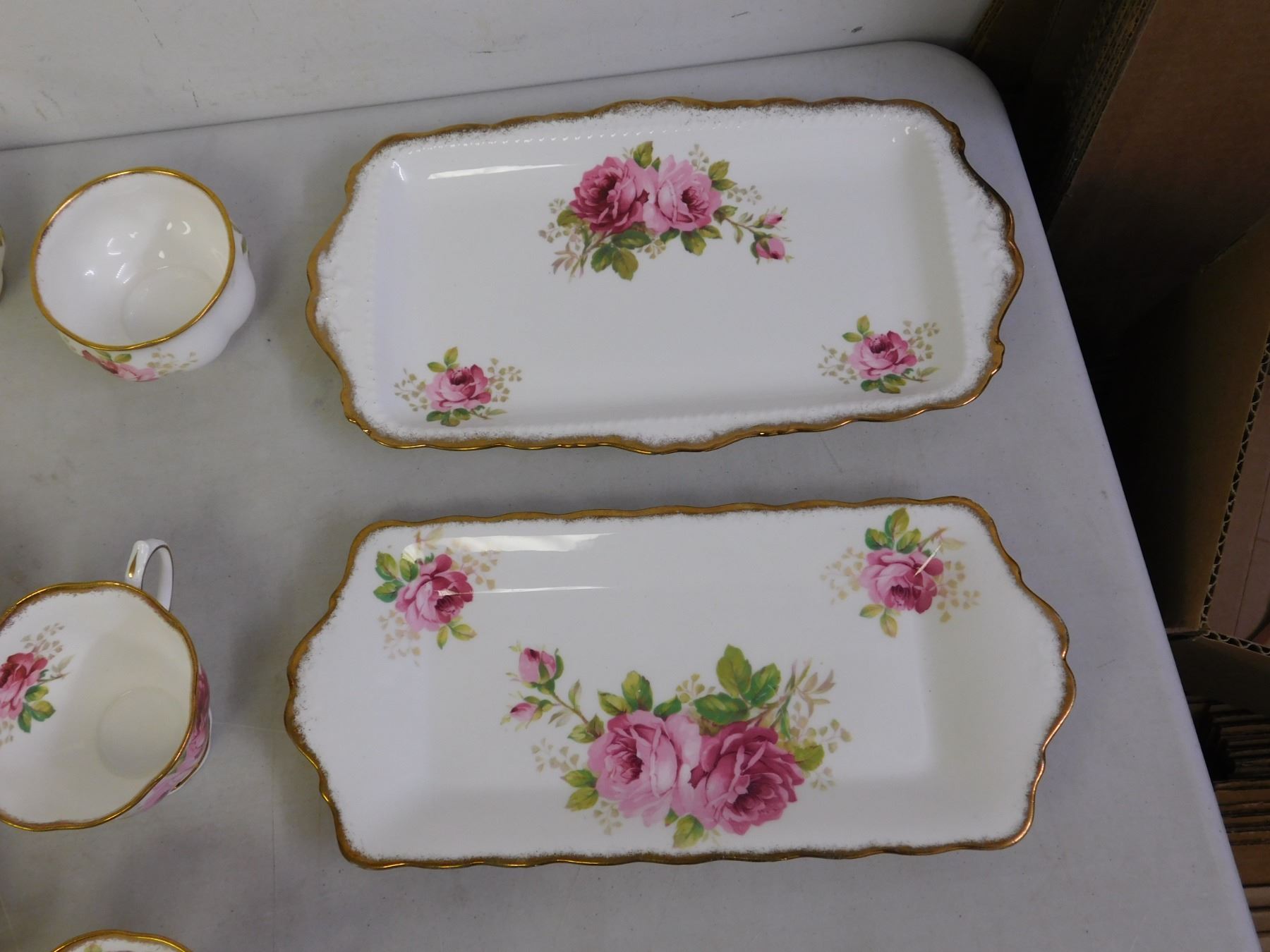 14 cups 14 saucers and 10 luncheon plates. set of cream sugar and 3 serving trays. all appears to be in nice condition