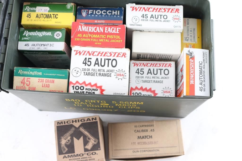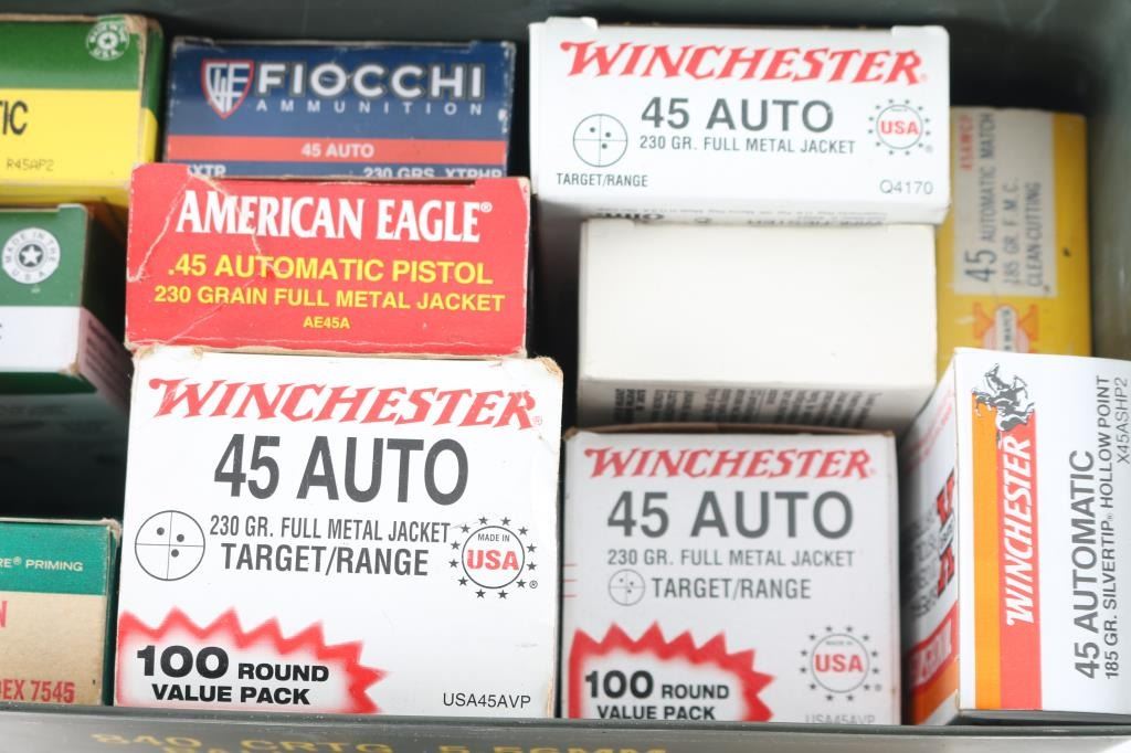 Approx. 750 rounds of new factory 45 ACP ammunition, from various makers, in factory boxes.