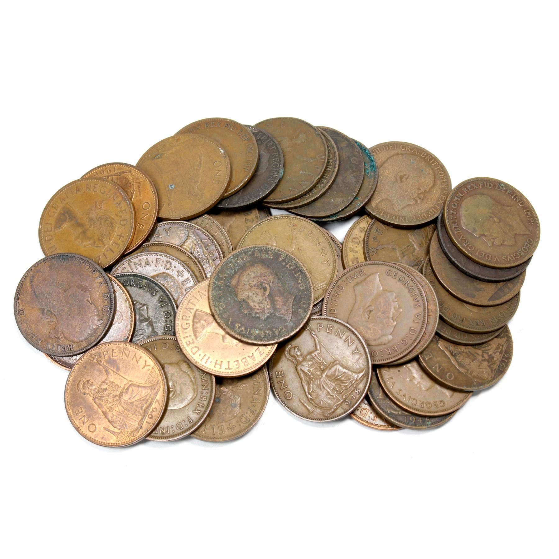 Lot of 45x 1800s to Early 1960s Great Britain Pennies. Average to circulated condition.