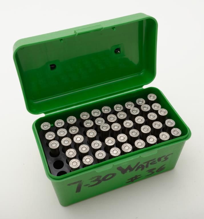 Lot of 48 rounds of 7-30 Waters reloads, collectors ammo only; not to be fired. Est.: $25-$50.