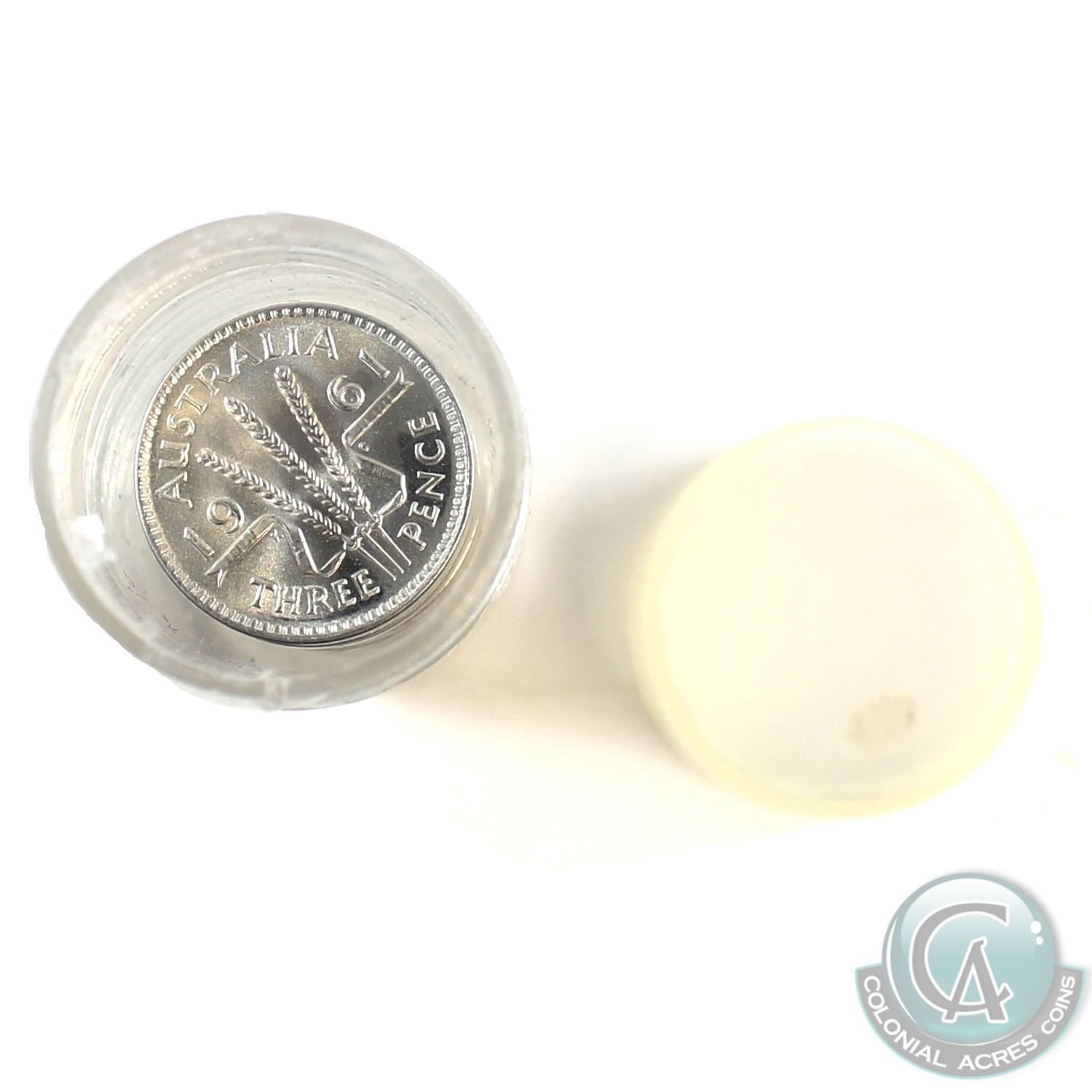 Lot of 48x Australia Silver 3 Pence Coins UNC+ in Plastic Tube. 48pcs