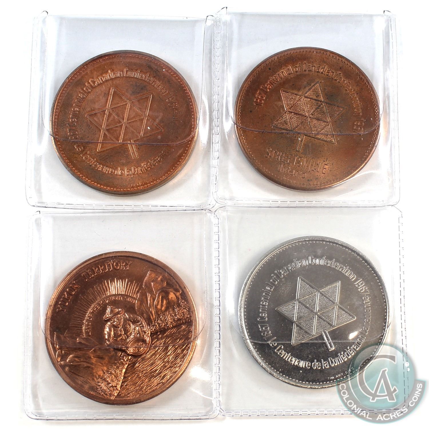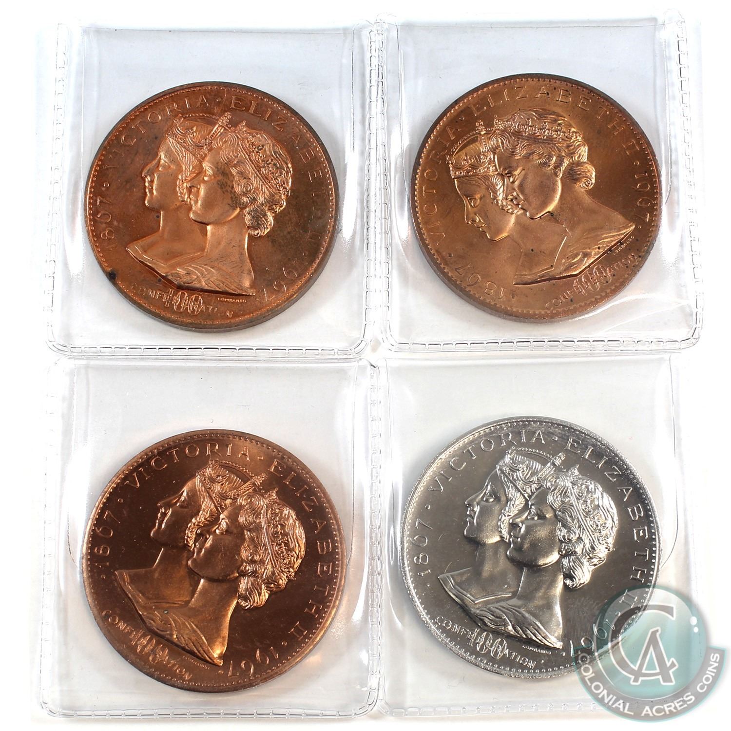 Lot of 4x 1867-1967 Canada Victoria Elizabeth Confederation 100 Medals. All medals have one side the same design and the other sides are all different. 4pcs